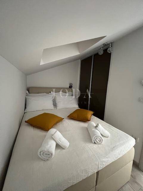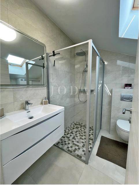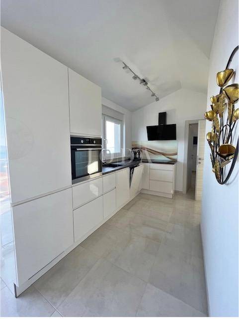 Posredujemo u prodaji modernog stana u Crikvenici, smještenog u visokom potkrovlju zgrade izgrađene 2020. godine. Sastoji se od ulaznog hodnika, kupaonice, dvije spavaće sobe, funkcionalne kuhinje s blagovaonicom, prostranog dnevnog boravka te terase s koje se pruža očaravajući pogled na more. Stan je opremljen podnim grijanjem i klima uređajem, što osigurava udoban boravak tijekom cijele godine. Dodatna pogodnost su dva parkirna mjesta u okućnici zgrade.