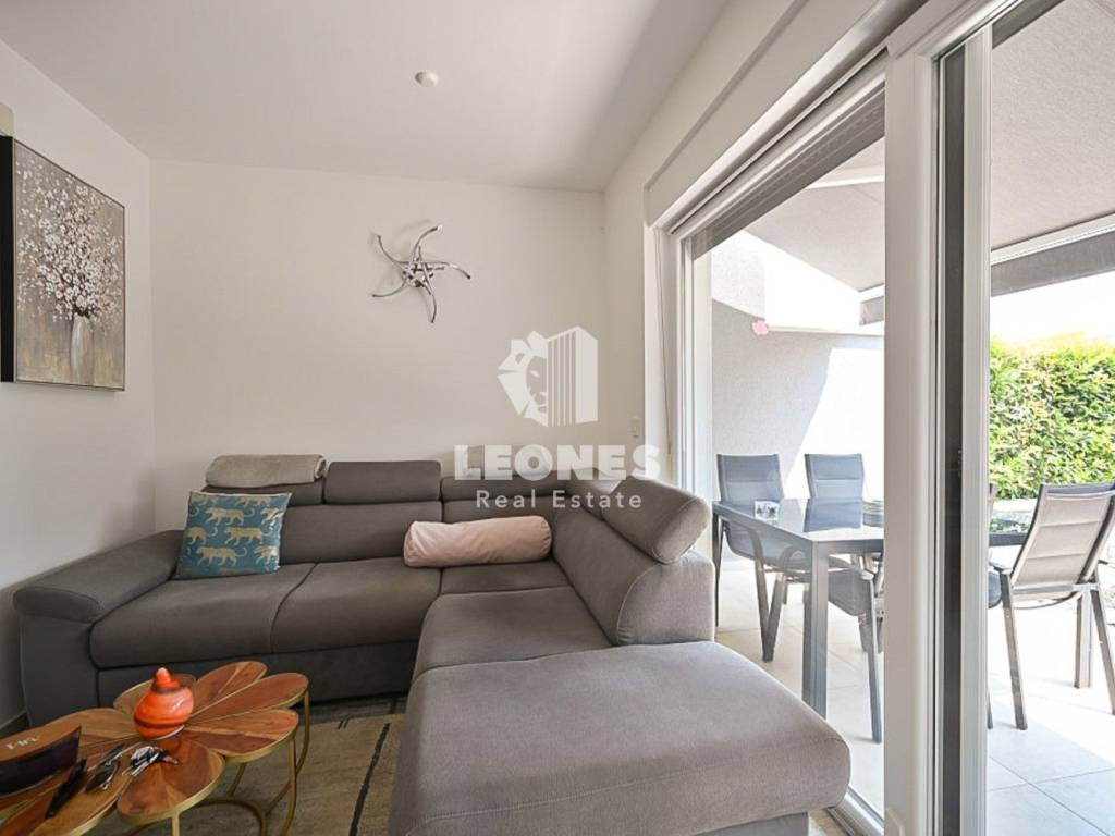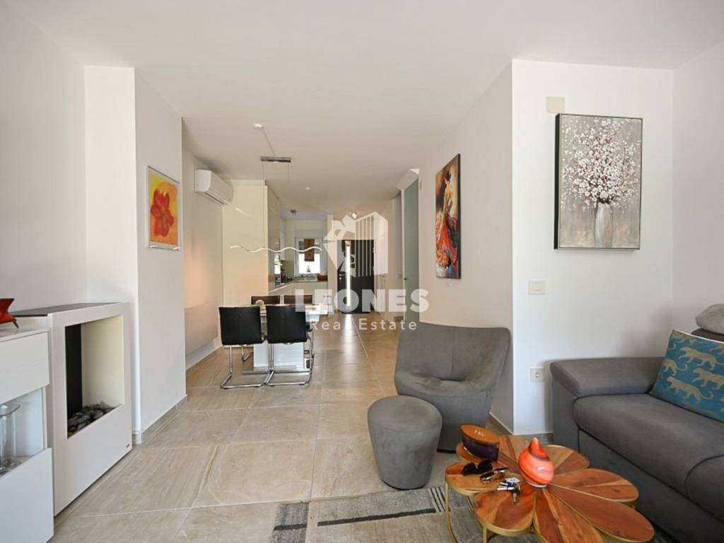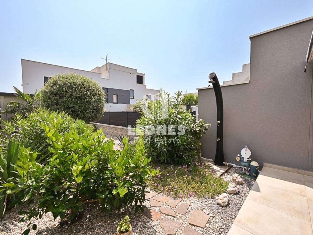 Kuća se sastoji od ulaznog hodnika, wc-a, ostave, lijepe i kvalitetno namještene kuhinje sa blagovaonicom te dnevnog boravka sa izlazom na natkrivenu terasu koja je povezana sa lijepo uređenim dvorištem u kojem je zasađeno razno meditransko bilje.