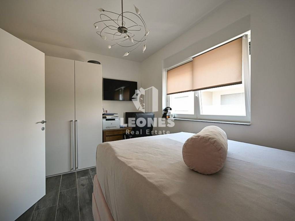 Na prvom katu nalaze se dvije spavaće sobe i kupaonica, unutarnje stepenice vode nas na krovnu terasu sa koje se pruža predivan pogled na grad Novigrad i more.