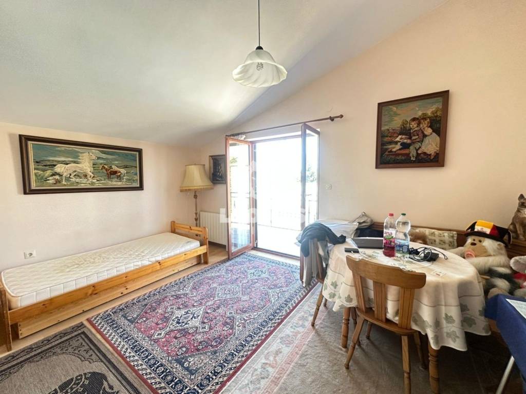 Ova divna kuća sastoji se od čak tri etaže i tri zasebna stana. U prizemlju se nalazi stan sa zasebnim ulazom, velikim dnevnim boravkom s kuhinjom i blagovaonicom, tri spavaće sobe, kupatilom te predivnom zatvorenom verandom stvorenom za druženja ili se veranda može pretvoriti u dodatnu spavaću sobu.
