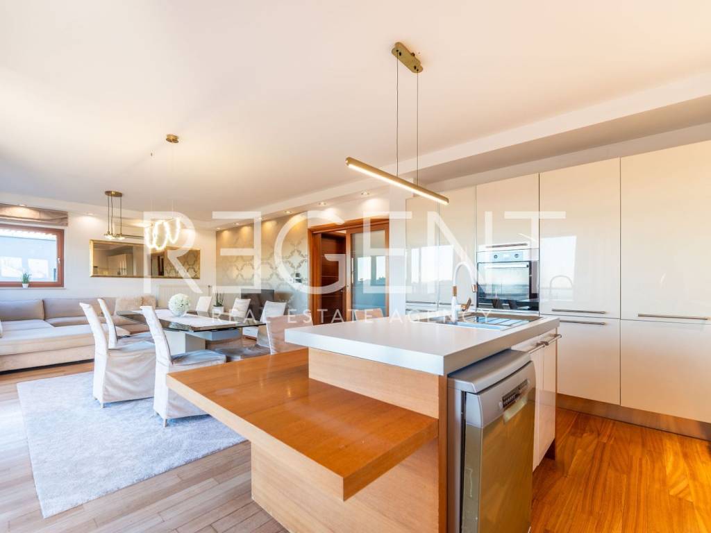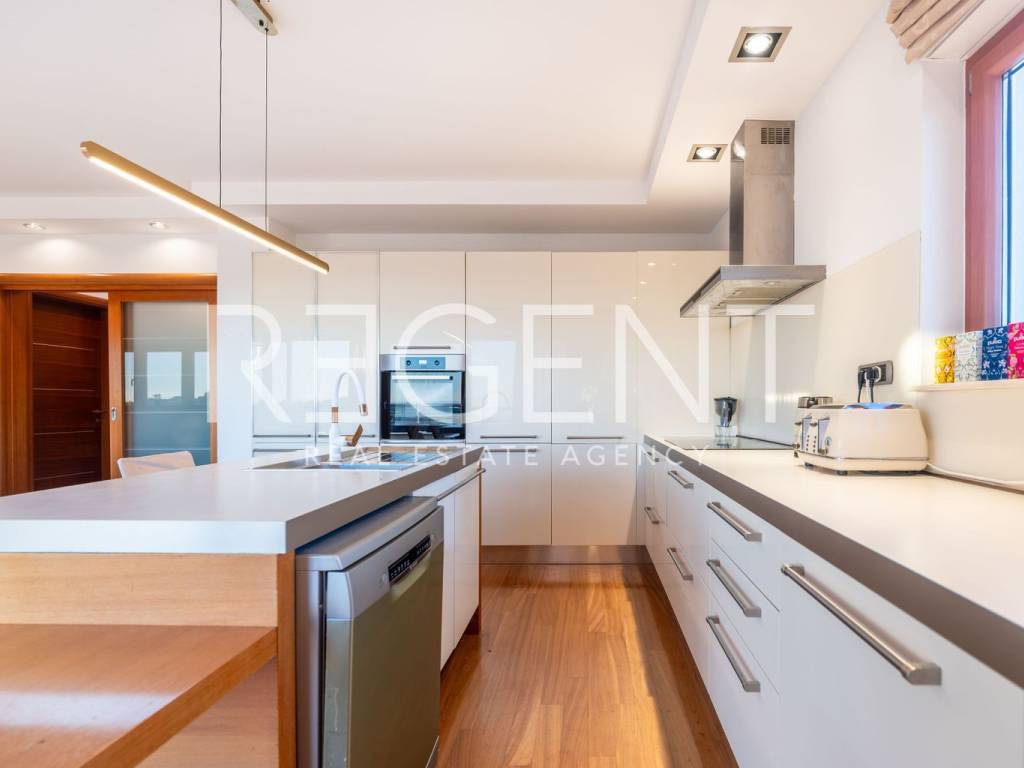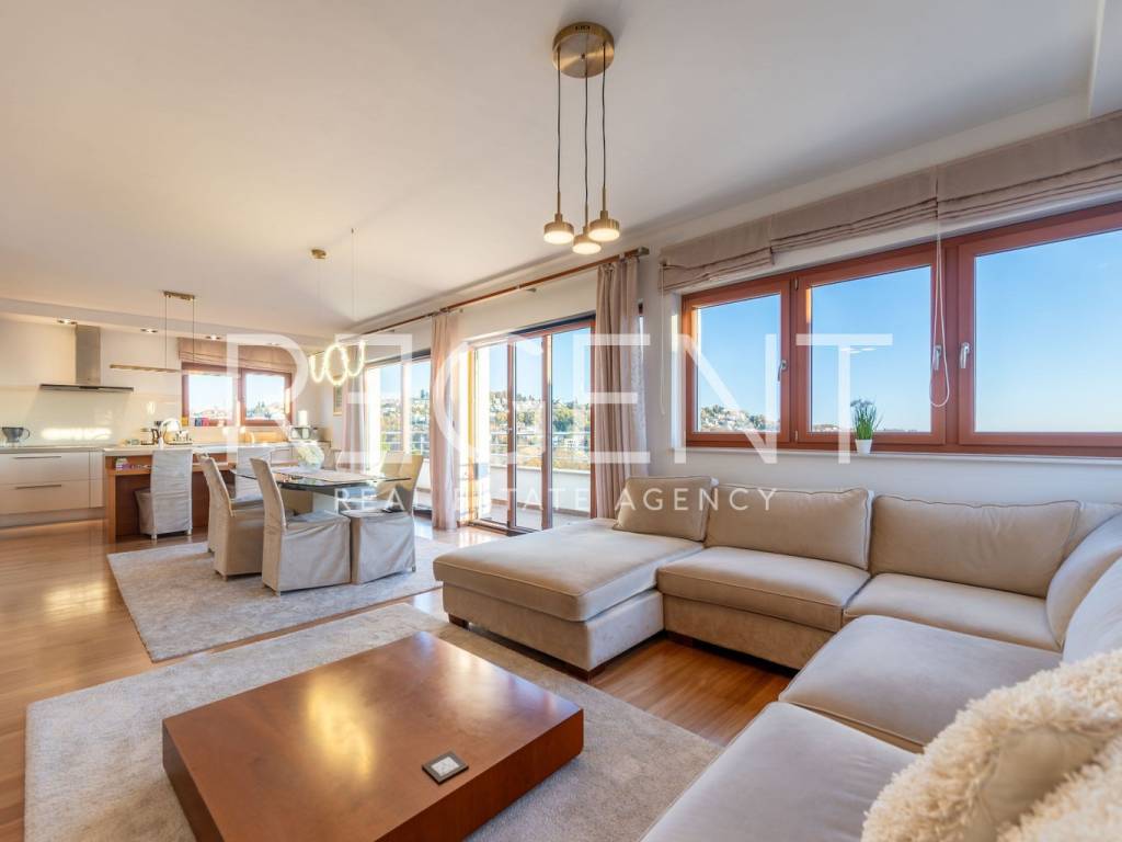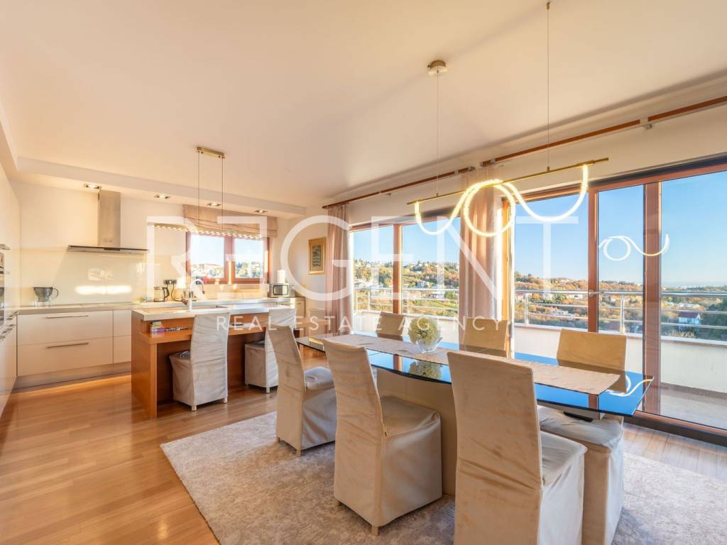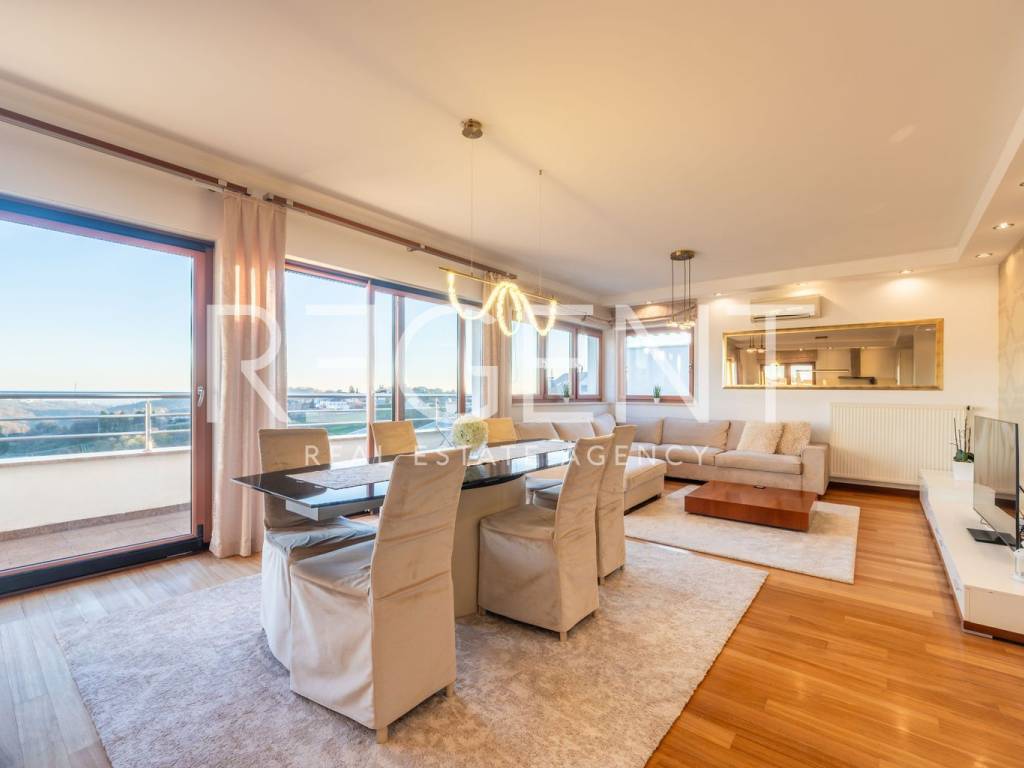 Penthouse se nalazi u urbanoj vili novogradnje na mirnoj lokaciji okruženoj zelenilom, idealnoj za obiteljski život. Smješten je na posljednjem katu i nudi potpunu privatnost te visoku razinu udobnosti i dizajna. Stan ima ukupnu površinu od 136 m² i sastoji se od prostranog open space dnevnog boravka s kuhinjom i blagovaonicom, tri spavaće sobe, dvije kupaonice i dva balkona. Uređenje je izvedeno prema najvišim standardima uz korištenje vrhunskih materijala i dizajnerskog namještaja. Kuhinja je opremljena aparatima najviše kvalitete, a u stanu su podno grijanje, klima uređaji, električne rolete, protuprovalna vrata, portafon i video nadzor. Podne obloge su kombinacija parketa i keramike, dok vanjska stolarija od alu-drva s troslojnim staklima osigurava izvrsnu toplinsku i zvučnu izolaciju. Grijanje i hlađenje regulirano je putem dizalice topline. Uz stan dolaze ostava, garaža i vanjsko parkirno mjesto. Orijentacija stana je sjever–istok–zapad–jug, što osigurava obilje prirodnog svjetla tijekom cijelog dana. Nekretnina se nalazi na izvrsnoj lokaciji, u blizini međunarodne škole, vrtića, trgovina i zelenih površina Medvednice. Prometna povezanost s centrom grada i drugim dijelovima Zagreba čini ovu lokaciju savršenom kombinacijom mirnog života i urbane praktičnosti. Za više informacija, slobodno nas kontaktirajte.