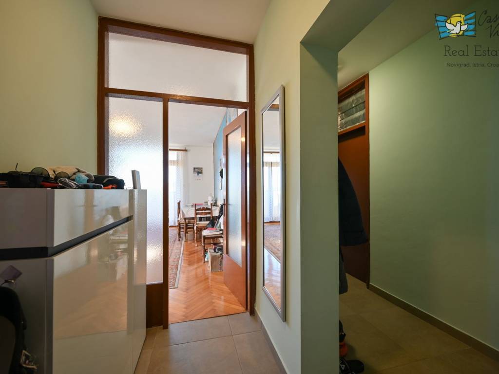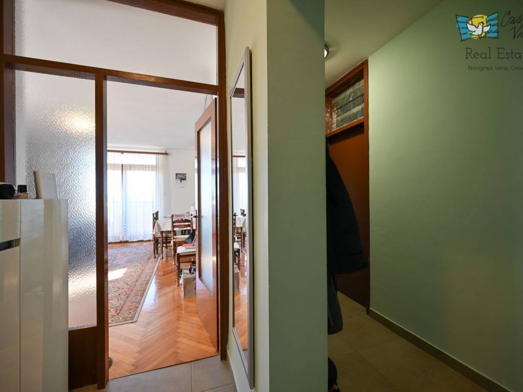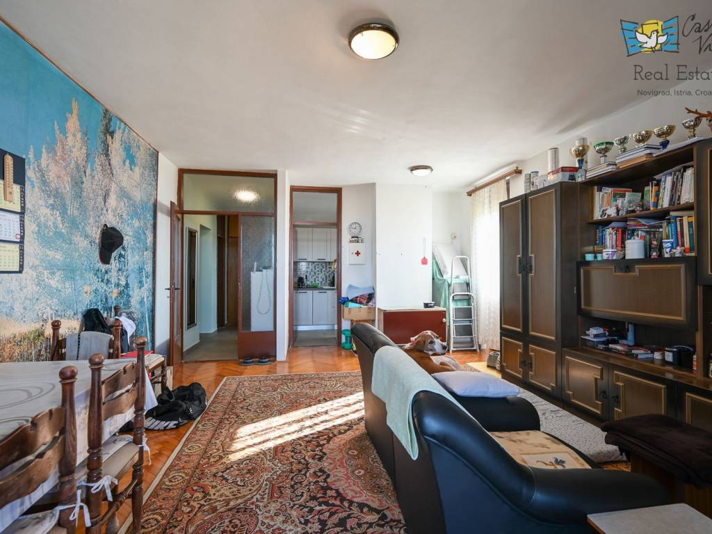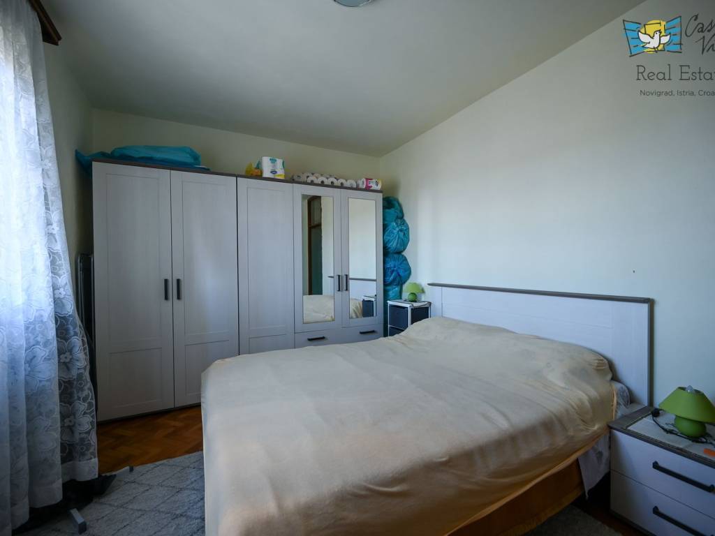 Na prodaju je atraktivan stan površine 80 m2 smješten na prvom katu zgrade s ukupno tri kata u mirnom dijelu Novigrada. Ova nekretnina nudi savršen spoj udobnosti i praktičnosti u neposrednoj blizini mora, što je čini izuzetno privlačnom za obiteljski život, odmor ili investiciju.