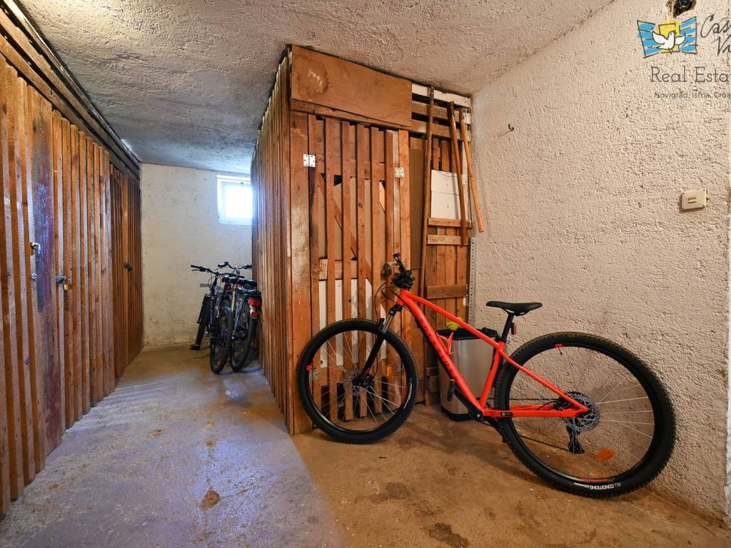 Dodatnu vrijednost ovoj nekretnini daju podrum, ostava/skladište i drvarnica, koji osiguravaju dodatan prostor za pohranu. Stan je opremljen kuhinjom s aparatima, perilicom posuđa, perilicom rublja, televizorom i krevetom, što omogućuje brzo i jednostavno useljenje. Grijanje je na struju, a za ugodnu temperaturu tijekom toplijih mjeseci brine klima uređaj.