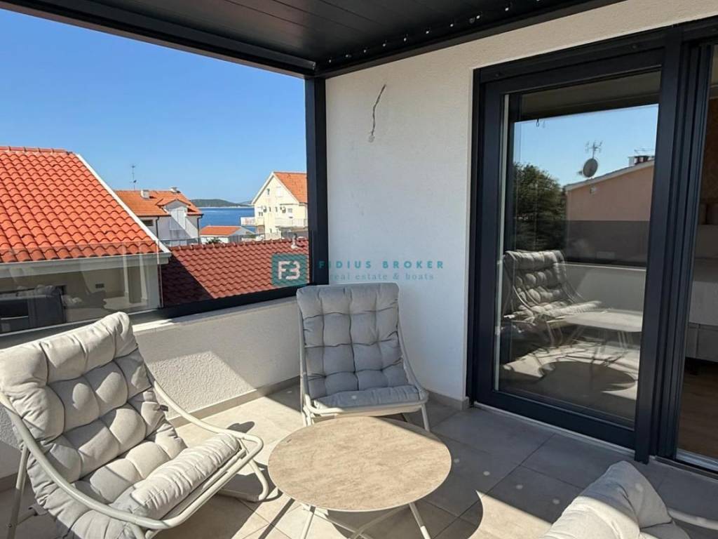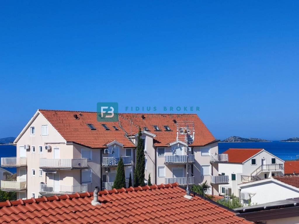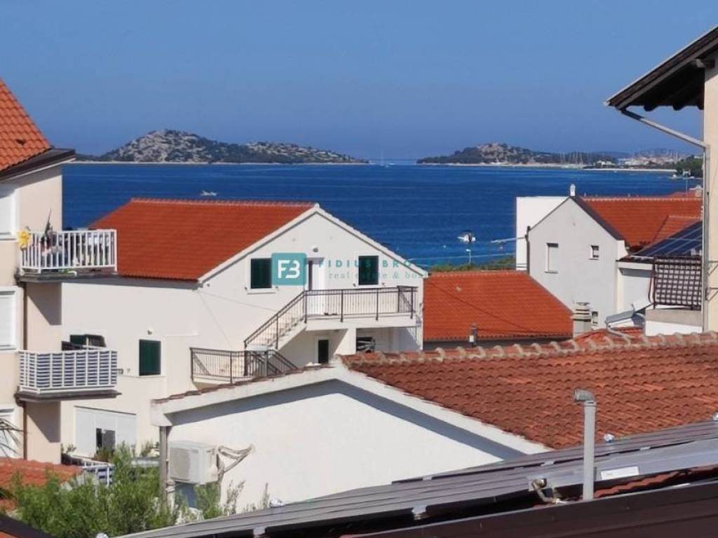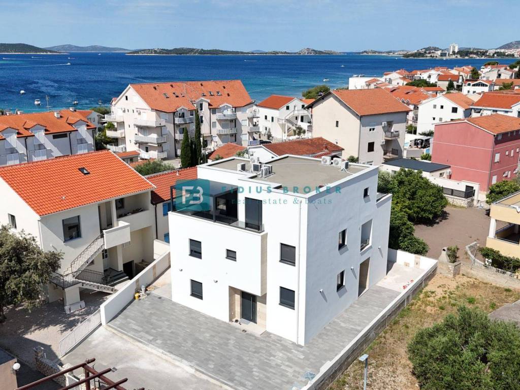 VODICE - SRIMA, novo, namještena dvojna kuća, 300 m do plaže, pogled na more, useljivo
