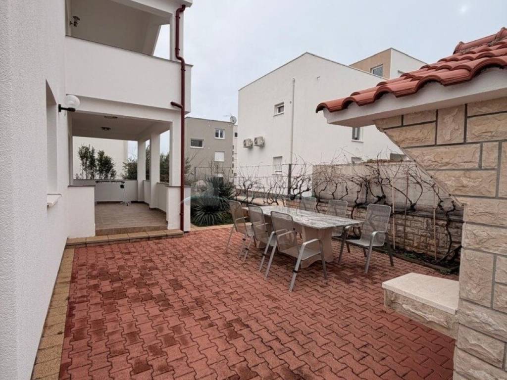 Smještena u mirnom dijelu Vodice, ova uređena obiteljska kuća nudi funkcionalan raspored, djelomičan pogled na more i prostranu, potpuno ograđenu okućnicu koja osigurava privatnost i ugodan boravak na otvorenom.