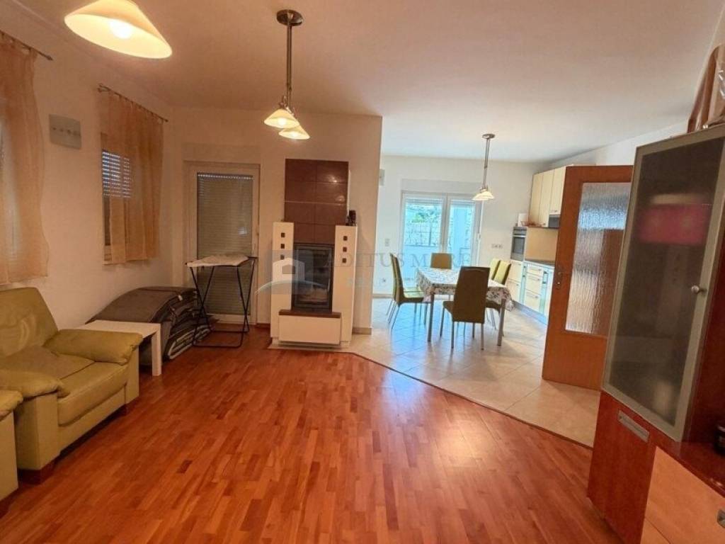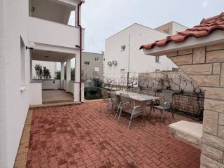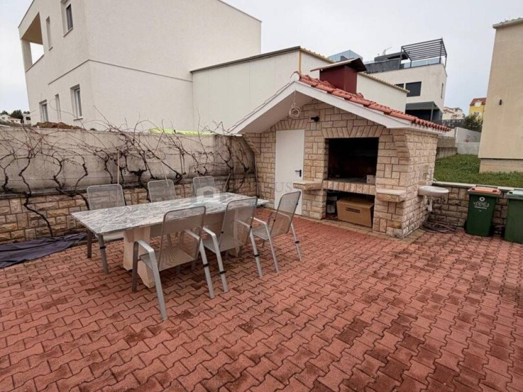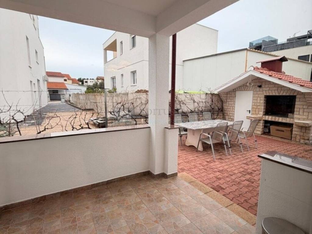 U prizemlju se nalazi stan koji obuhvaća ulazni prostor, ostavu, jednu spavaću sobu, kupaonicu te prostrani dnevni boravak povezan s blagovaonicom i kuhinjom. Iz dnevnog dijela izlazi se na natkrivenu terasu u dvorištu, idealnu za svakodnevni boravak tijekom toplijih mjeseci. Okućnica je pažljivo uređena i popločana, a dodatnu vrijednost daje prostor s roštiljem, predviđen za druženja i boravak na otvorenom.
