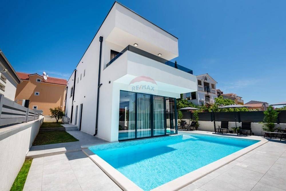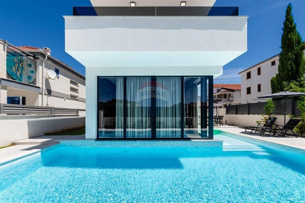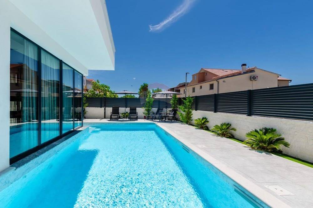 Na samo 150 m od mora prodaje se potpuno opremljena luksuzna vila od oko 300 m2 s velikim grijanim bazenom i privatnim dvorištem.