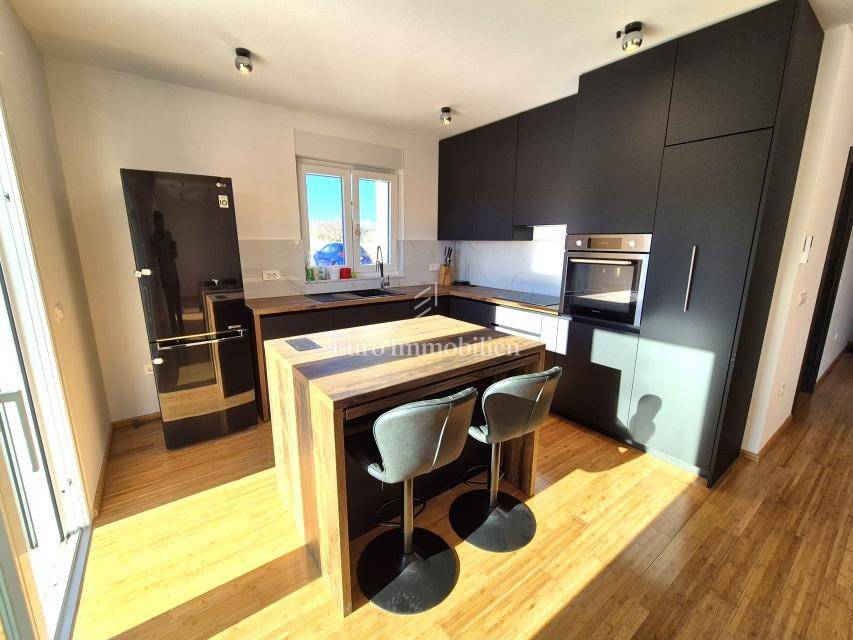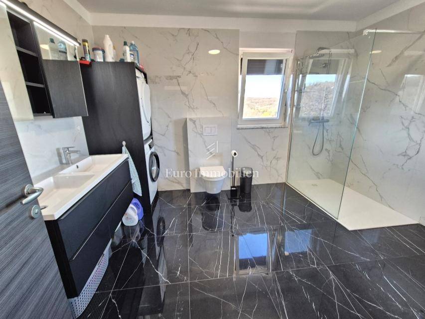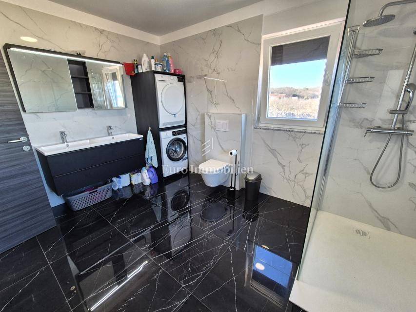 Prodaje se nova kuća površine 152 m2, sagrađena na parceli površine 828 m2. Kuća se sastoji od prizemlja i kata. U prizemlju je ulazni hodnik, spremište, kupaona, spavaća soba i dnevni boravak s kuhinjom i blagovaonom. Na katu su 3 spavaće sobe od kojih glavna soba ima garderobu i balkon, i prostrana kupaonica. Svaka prostorija je klimatizirana, a u kupaonicama je podno grijanje. Kuća se prodaje namještena i spremna je za korištenje.