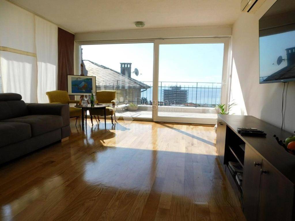 U blizini centra Opatije, u elegantnoj stambenoj vili, smješten je ovaj iznimno prostran i reprezentativan stan ukupne površine 200 m. Stan se nalazi na drugom katu i prostire se na jednoj etaži, a svojim rasporedom i karakteristikama idealan je za udoban i kvalitetan život. Stan se sastoji od tri prostrane spavaće sobe, velikog dnevnog boravka, odvojene kuhinje s blagovaonicom te dvije moderno uređene kupaonice, od kojih je jedna opremljena hidromasažnom kadom. Posebnu vrijednost daje impresivna terasa površine čak 60 m, s otvorenim i neometanim pogledom na more savršeno mjesto za opuštanje, druženja ili uživanje u mediteranskom načinu života.