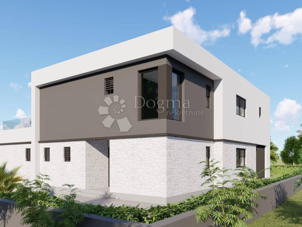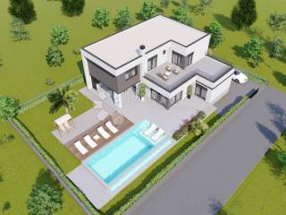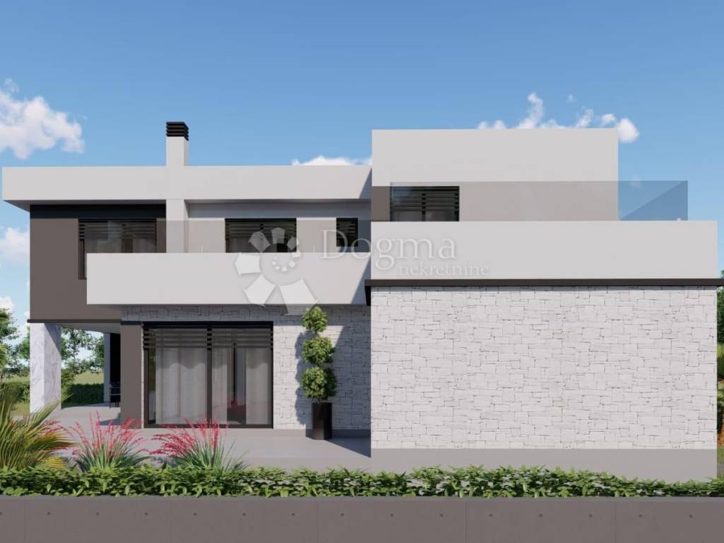 Na prodaju je građevinsko zemljište s pravomoćnom građevinskom dozvolom za izgradnju luksuzne vile modernog dizajna, smješteno u mirnom i privatnom okruženju s panoramskim pogledom na Velebit, Učka i otok Cres.