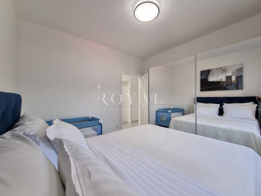 Stan se sastoji od dvije spavaće sobe, prostranog dnevnog boravka s blagovaonicom i modernom kuhinjom, kupaonice, wc za gosti , te balkona s prekrasnim pogledom na more i okolicu.