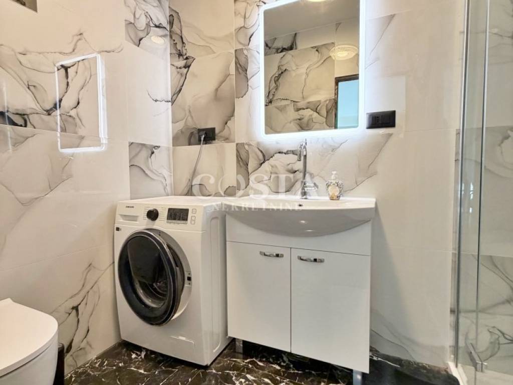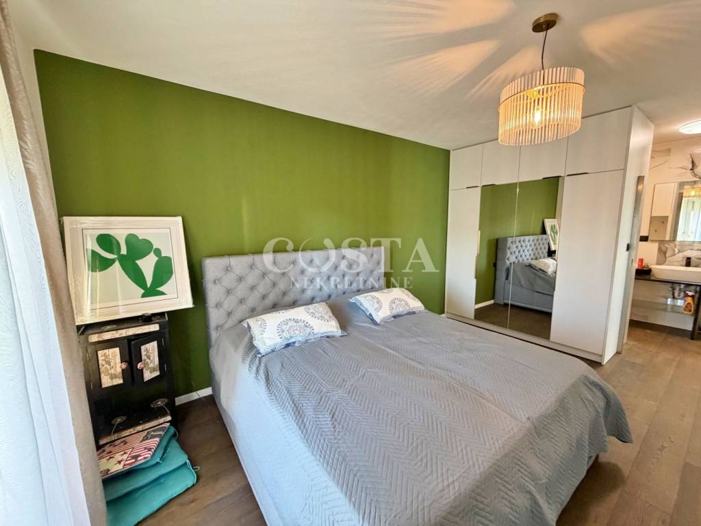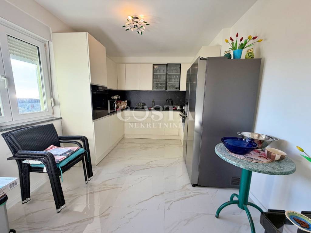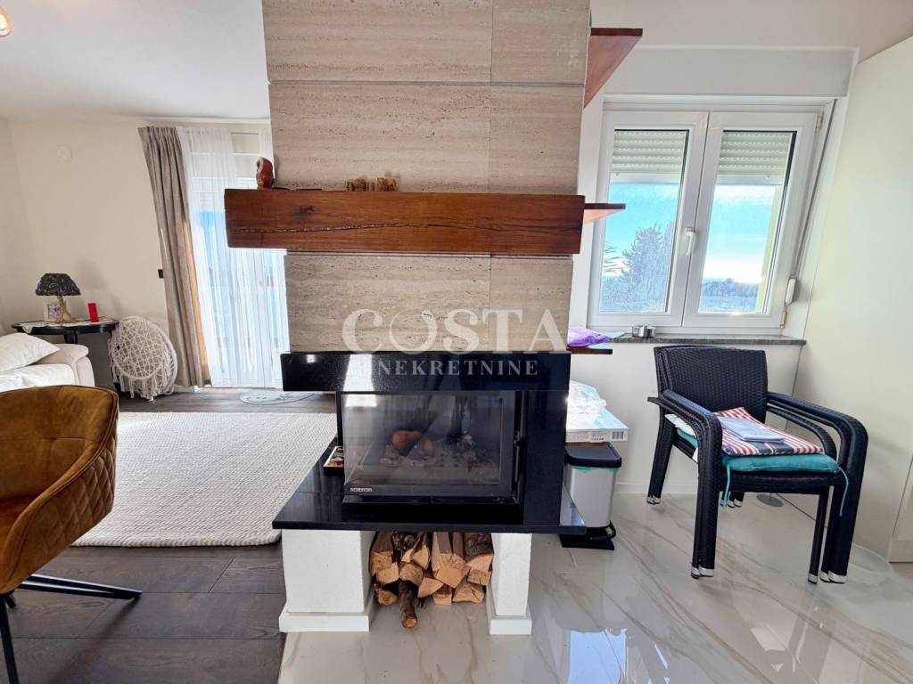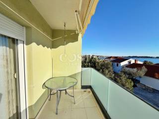 Prodaje se moderno uređen stan s pogledom na more u mjestu Petrčane pokraj Zadra. Stan površine 77,06 m2 nalazi se na prvom katu manje stambene zgrade sa šest jedinica. Sastoji se od prostranog dnevnog boravka, kuhinje i blagovaone, dvije spavaće sobe, dvije kupaonice i dva balkona. Stan je kompletno klimatiziran, a podno grijanje je provedeno u dnevnom boravku i u kuhinji. Stan je opremljen vrhunskom bijelom tehnikom. Za podne obloge korišteni su visokokvalitetni parketi, a stolarija je PVC. Stanu pripada i jedno parkirno mjesto u dvorištu zgrade.