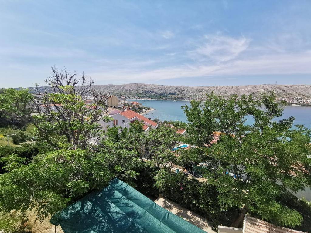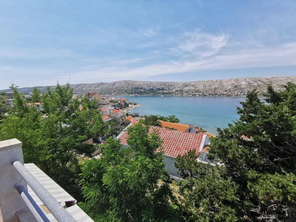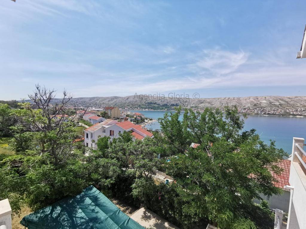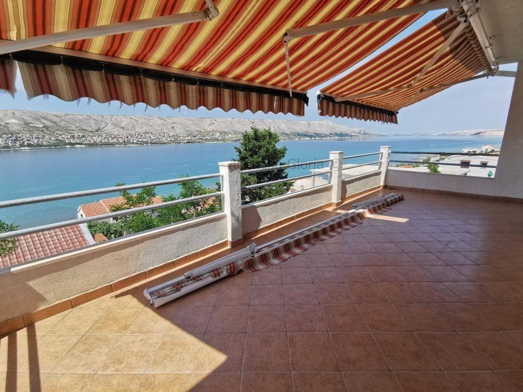 Prodaje se samostojeća kuća katnica s prekrasnim pogledom na more iPag površine cca 235m2 izgrađena na zemljištu površine 966m2.Sastoji se od četiri etaže: podrum, prizemlje, kat i potkrovlje. U podrumu je smještena ljetna kuhinja + spavaća soba. U prizemlju se nalazi dvosobanstan koji se sastoji od dvije sobe, kupaonica, kuhinja s blagovaonicom i dnevnim boravkom i velika terasa površine cca 40m2s prekrasnim pogledom na more i Pag.Na prvom katu se nalazi dvosoban stan isti kao i u prizemlju osim što druga spavaća soba ima manju bočnu terasu s pogledom na more. Potkrovlje je koncipirano na isti način kao i prvi kat s velikom terasom površine 20 m2. Odlična lokacija u mirnom okruženju prirode i obiteljskih kuća. Do plaže svega 100m udaljenosti a do centra mjesta cca 800m.Ispred kuće se nalazi parkirna mjesta za 2-3 automobila. Kuća je spojena na kanalizaciju.Kuća se koristi u turističke svrhe s već uhodanim poslovanjem tako da se kupnja ove nekretnine može pretvoriti u isplativu investiciju. Vlasništvo i ostala dokumentacija uredna.