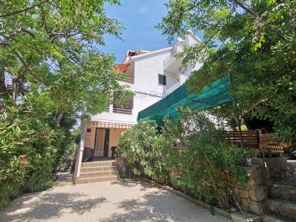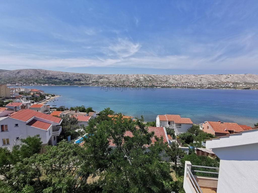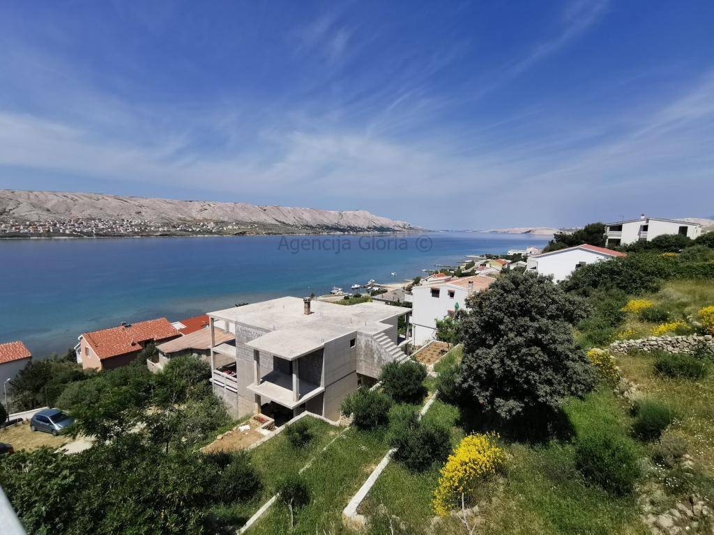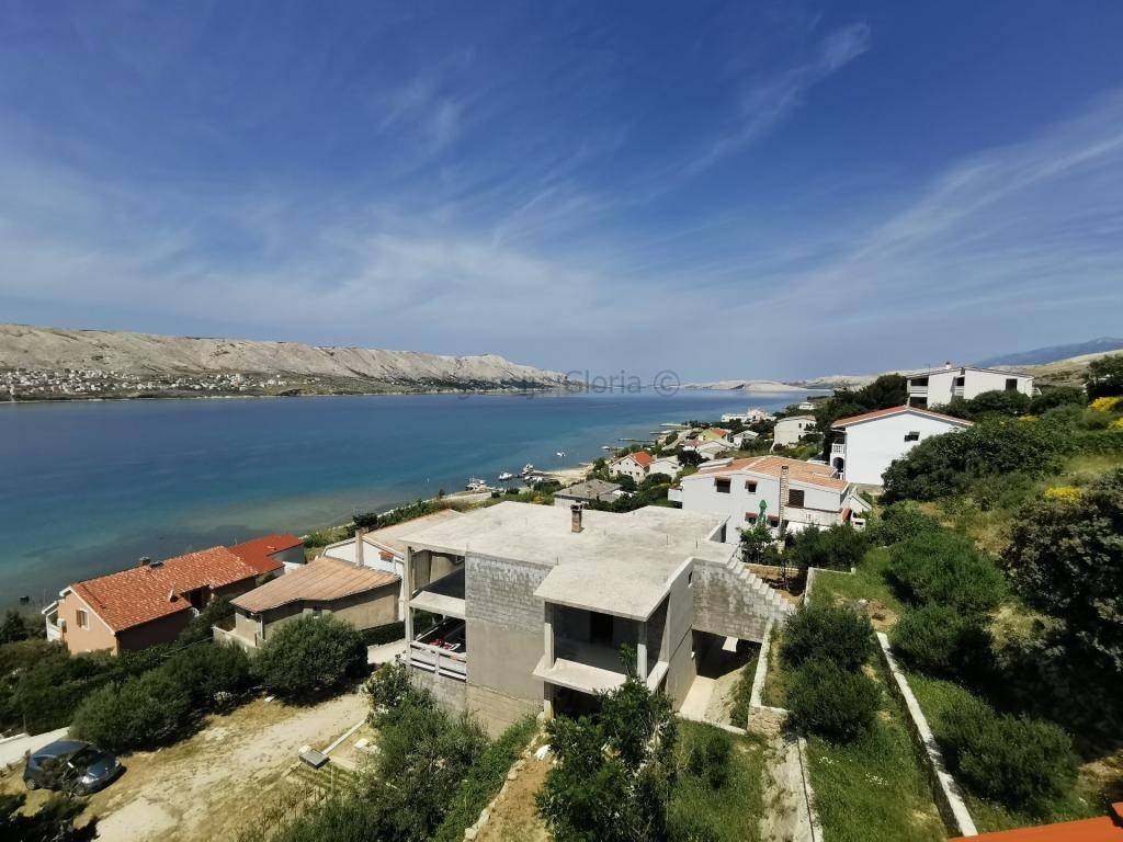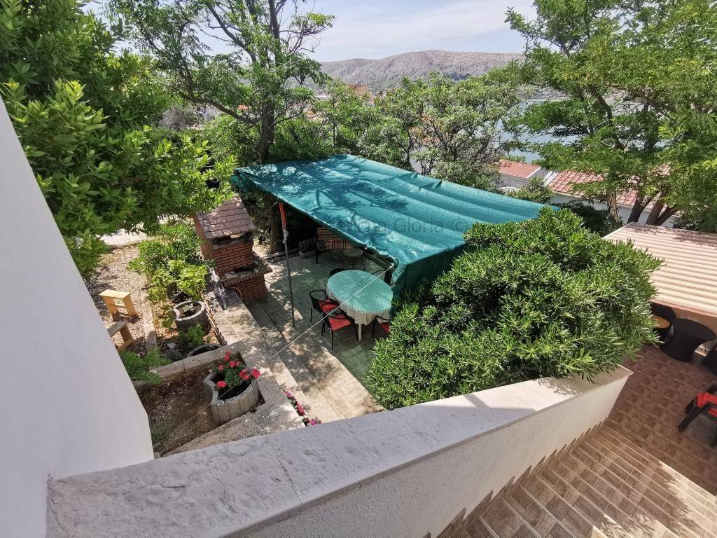 Prodaje se samostojeća kuća katnica s prekrasnim pogledom na more iPag površine cca 235m2 izgrađena na zemljištu površine 966m2.Sastoji se od četiri etaže: podrum, prizemlje, kat i potkrovlje. U podrumu je smještena ljetna kuhinja + spavaća soba. U prizemlju se nalazi dvosobanstan koji se sastoji od dvije sobe, kupaonica, kuhinja s blagovaonicom i dnevnim boravkom i velika terasa površine cca 40m2s prekrasnim pogledom na more i Pag.Na prvom katu se nalazi dvosoban stan isti kao i u prizemlju osim što druga spavaća soba ima manju bočnu terasu s pogledom na more. Potkrovlje je koncipirano na isti način kao i prvi kat s velikom terasom površine 20 m2. Odlična lokacija u mirnom okruženju prirode i obiteljskih kuća. Do plaže svega 100m udaljenosti a do centra mjesta cca 800m.Ispred kuće se nalazi parkirna mjesta za 2-3 automobila. Kuća je spojena na kanalizaciju.Kuća se koristi u turističke svrhe s već uhodanim poslovanjem tako da se kupnja ove nekretnine može pretvoriti u isplativu investiciju. Vlasništvo i ostala dokumentacija uredna.
