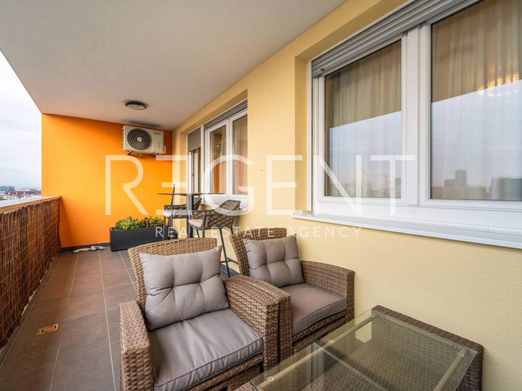 U ponudi je dvosoban stan za najam smješten na 6. katu moderne novogradnje s liftom. Stan je idealan za samce ili parove koji traže funkcionalan i ugodan prostor na dobroj lokaciji, uz dodatnu prednost garažnog parkirnog mjesta. Stan se sastoji od spavaće sobe, kupaonice s WC-om te dnevnog boravka povezanog s kuhinjom i blagovaonicom. Iz dnevnog dijela izlazi se na veliku terasu koja pruža dodatni prostor za opuštanje i boravak na otvorenom. Stan je u potpunosti namješten i opremljen modernom opremom i kvalitetnim uređajima, što omogućuje ugodno stanovanje bez dodatnih ulaganja. Zgrada je novije gradnje i ima lift, a stanu pripada i garažno parkirno mjesto što značajno olakšava svakodnevicu. Lokacija je odlično povezana i u neposrednoj blizini nalaze se trgovine, javni prijevoz, škole, vrtići i svi ostali sadržaji potrebni za ugodan život. Stan je spreman za useljenje odmah. Za više informacija i dogovor oko razgledavanja, slobodno nas kontaktirajte.
