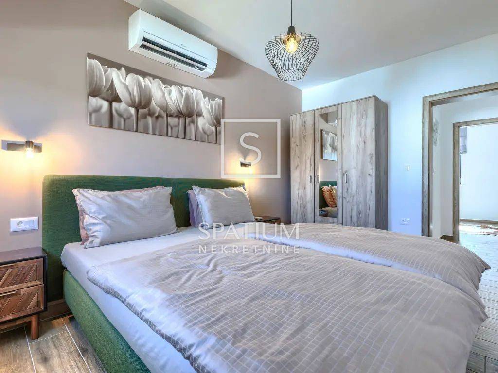 Za udobnost tijekom cijele godine osigurano je grijanje i hlađenje putem inverter klima uređaja u svim prostorijama, dok kamin u dnevnom boravku pruža dodatnu toplinu i ugodnu atmosferu.