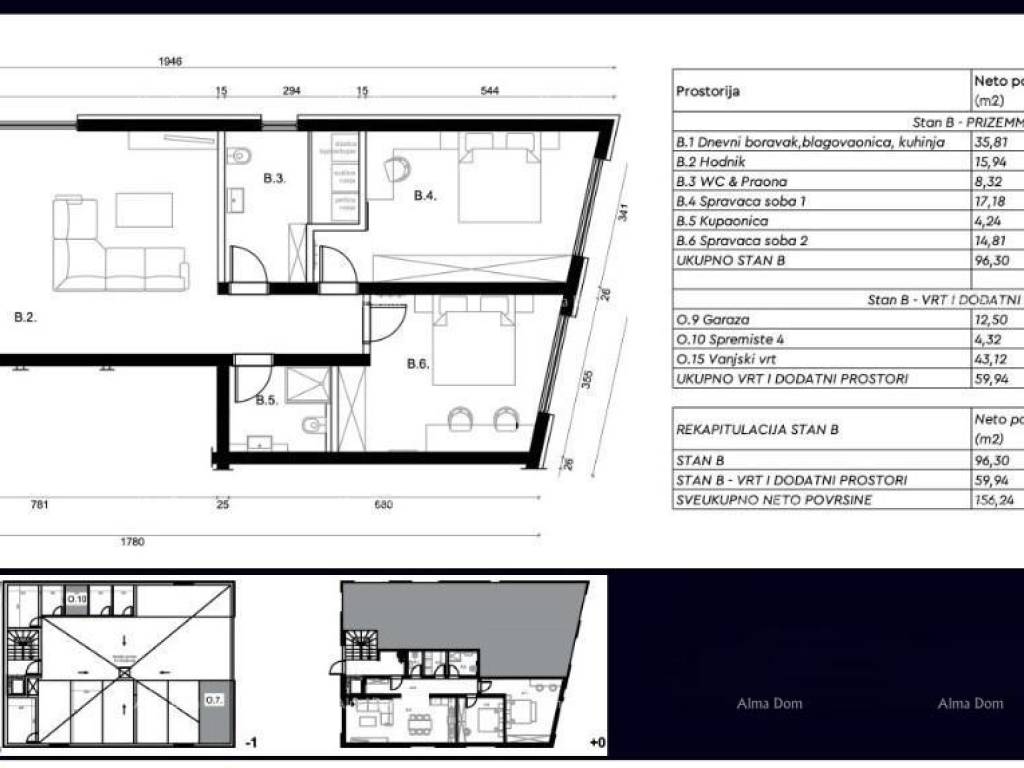Stan B je trosoban stan orijentacije jug-istok koji pruža udobnost i prostranost uz prekrasan pogled na more