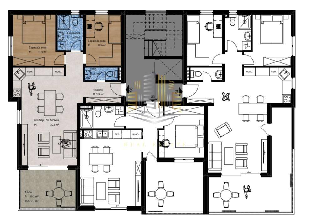 Svi ugrađeni materijali, kao i završne obloge, pažljivo su odabrani kako bi zadovoljili najviše estetske i funkcionalne standarde suvremenog stanovanja.