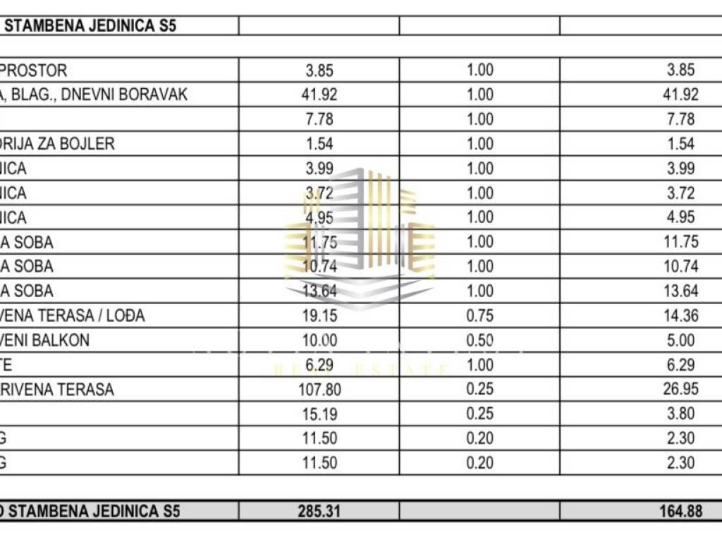 Neto stambena površina: 164,88 m²