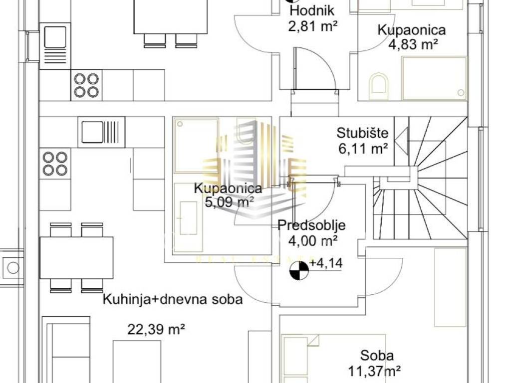 Stan 3 (40 m²) – jednosobni stan s kupaonicom