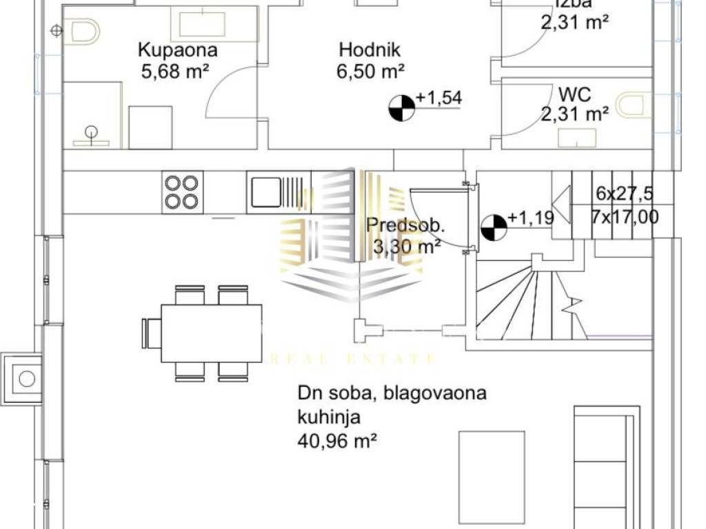 Prizemlje: Stan 1 (80 m²) – dvosobni stan s kupaonicom i dodatnim WC-om