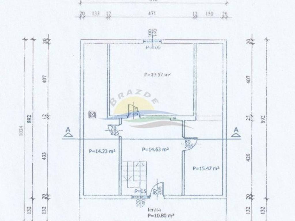 Potkrovlje (60m2) se sastoji od ulazne galerije sa izlazom na balkon (10,80m2)  i 3 potencijalne sobe (neuređene) od čega su dvije pod kosinom krovišta.