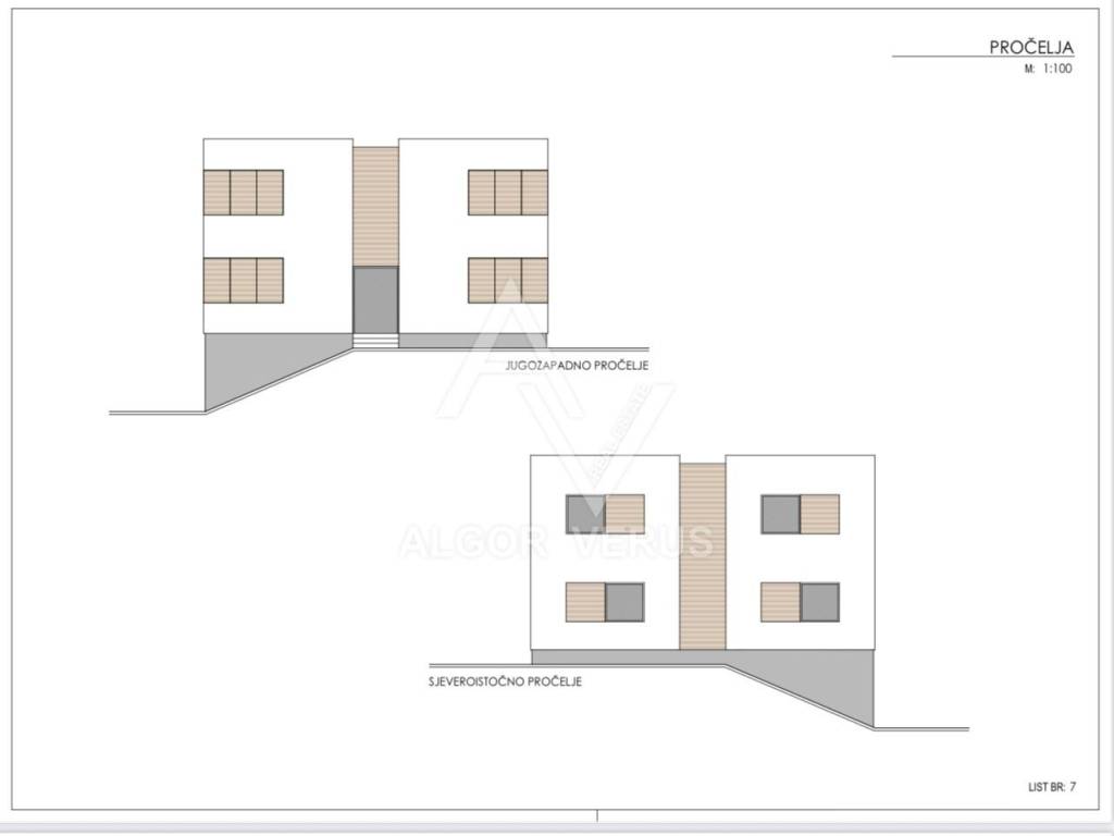 Prodaje se gradjevinsko zemljište površine 846 m2, sa ishodovanom gradjevinskom dozvolom za gradjenje gradjevine stambene namjene sa 4 stambene jedinice ( 4 stana ) Prizemlje: 2 stana ( 74,94 i 71,59 m2) Kat : 2 stana ( 74,94 i 71,59 m2)
