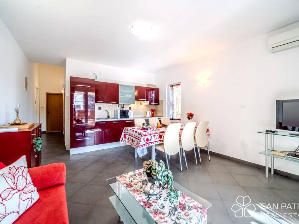 Zgrada je izgrađena 2007. godine i sastoji se od 6 funkcionalnih dvosobnih apartmana. Svaka jedinica ima vlastito parkirno mjesto, vanjske prostore i otvoren pogled na more. Apartmani su potpuno namješteni, klimatizirani i spremni za korištenje bez dodatnih ulaganja.