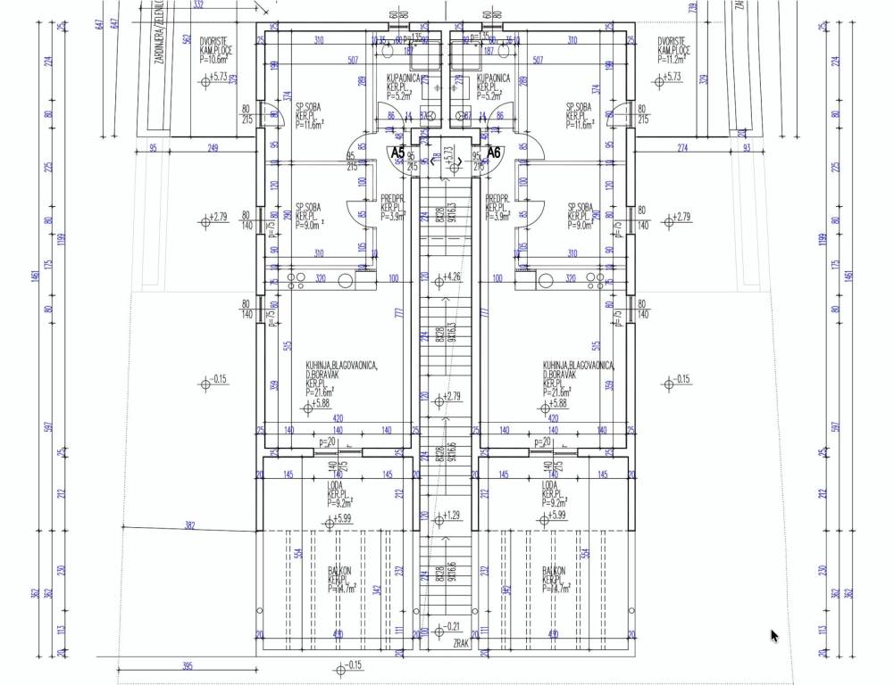 Stan A5 - 2. kat - stambena površina 60,50 m2 (2 spavaće sobe + kupaonica) + balkon (14,70 m2 - J) + terasa (10,60 m2 - Z) + vrt (29 m2) + vanjsko parking mjesto P5, ukupna neto površina 75,80 m2 = 360.000 EUR
