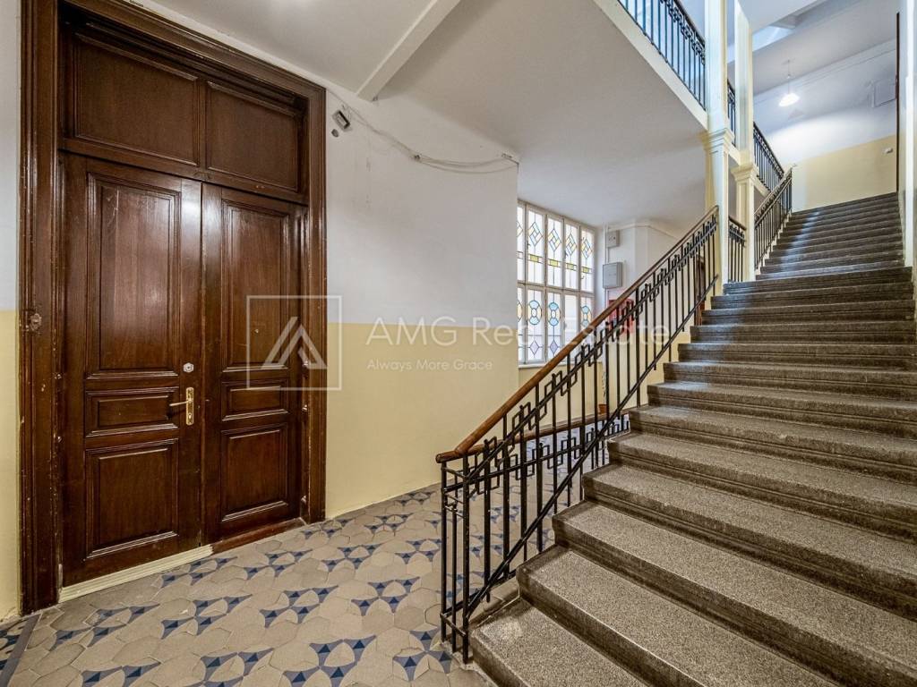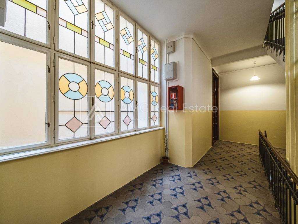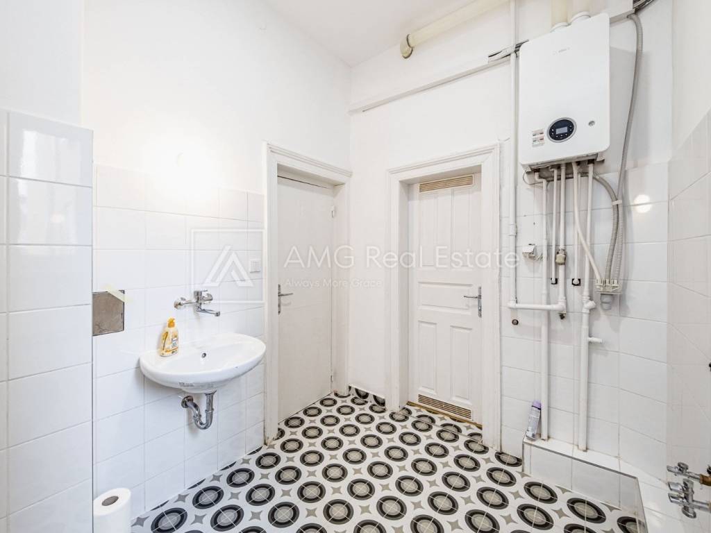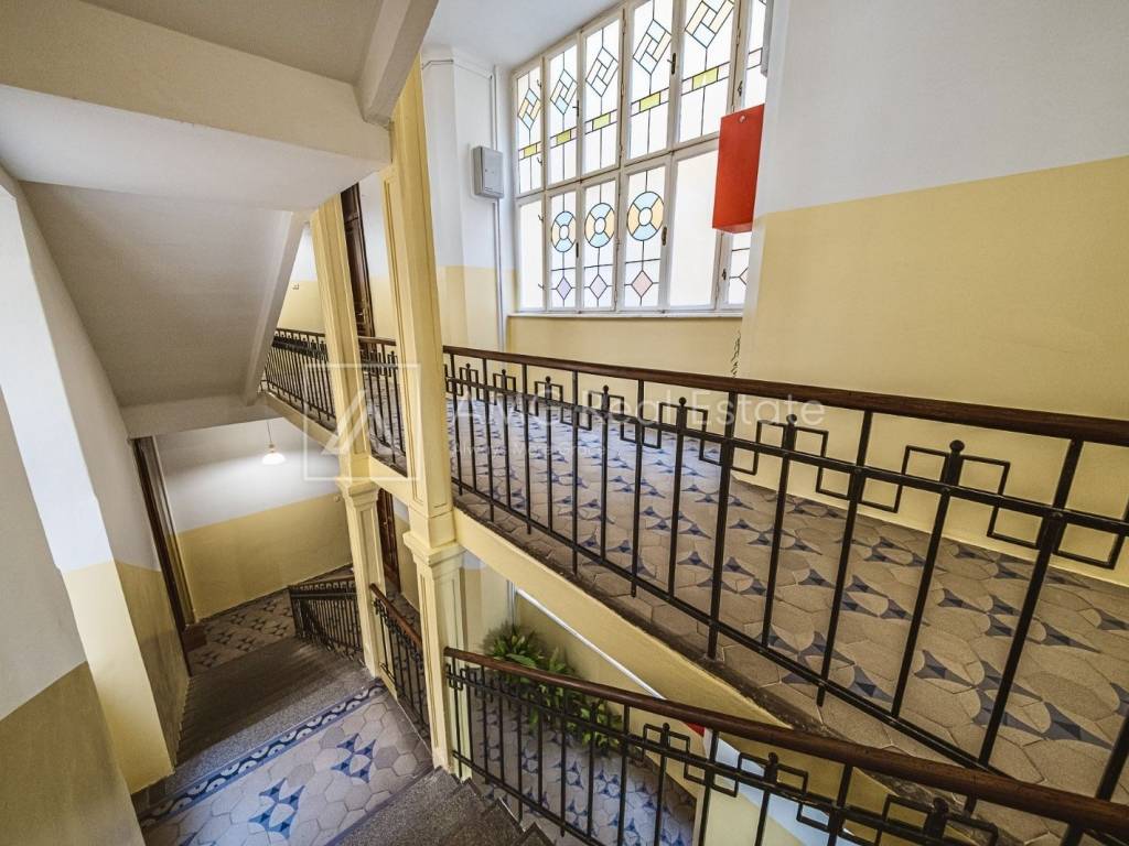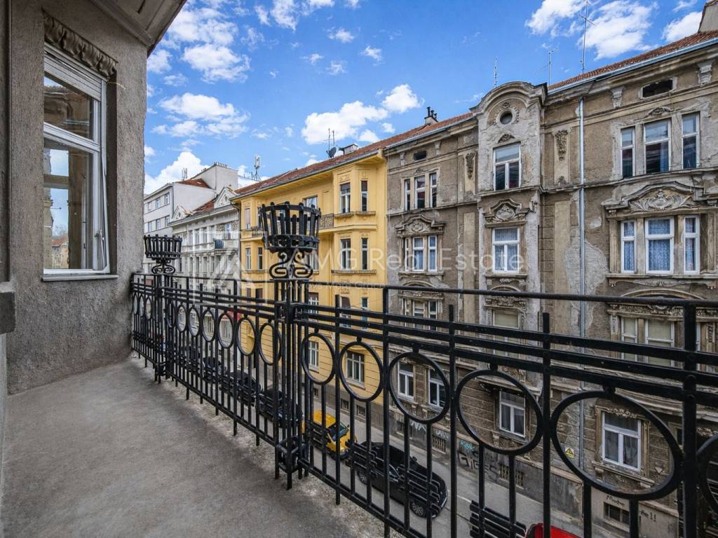 Stan površine 121 m² odlikuju prostranost i visoki stropovi (3,30 m), a sastoji se od: • tri velike i prostrane sobe (25.94 m2, 24.84 m2 i 23.10 m2) • dodatne djevojačke sobe (10.52 m2) • reprezentativnog ulaznog foajea (11,27 m2) • kuhinje (13.85 m2) • ostave (2.42 m2) • kupaonice (5.23 m2) • odvojenog toaleta (1.24 m2) • prekrasnog balkona u secesijskom stilu (4.68 m2)
