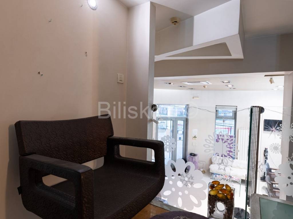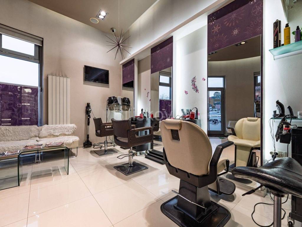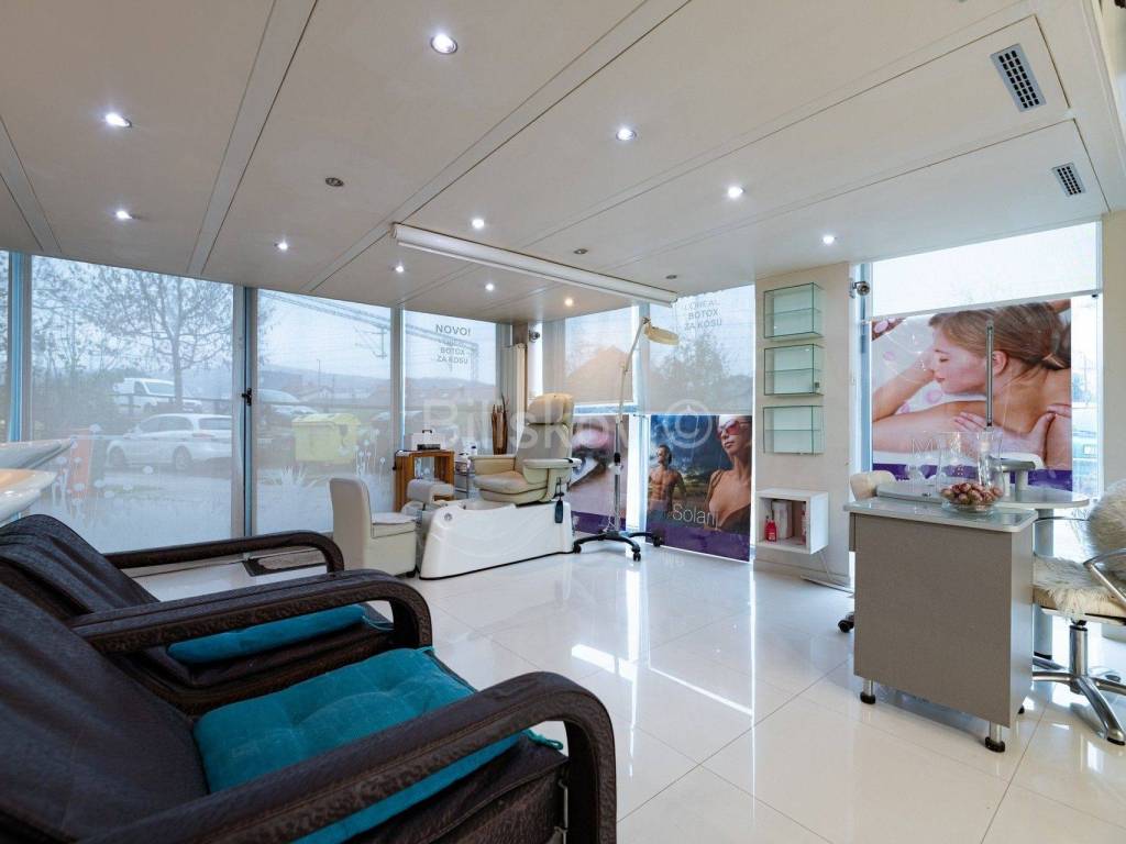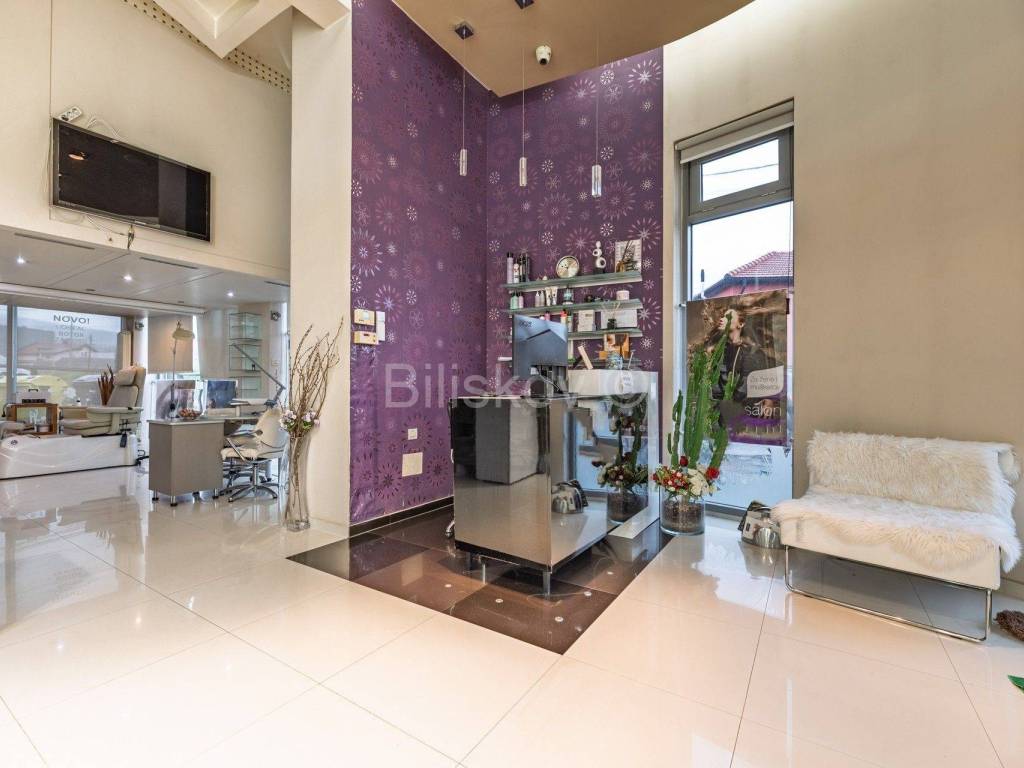 Poslovni prostor, renomirani salon ljepote, sastoji se od frizerskog salona, kozmetičkog salona, pretprostora, garderobe i wc-a u prizemlju površine 64,12 m2, stubišta, hodnika, 2 sobe za masažu, solarija i kupaonice na galeriji površine 23,03 m2.