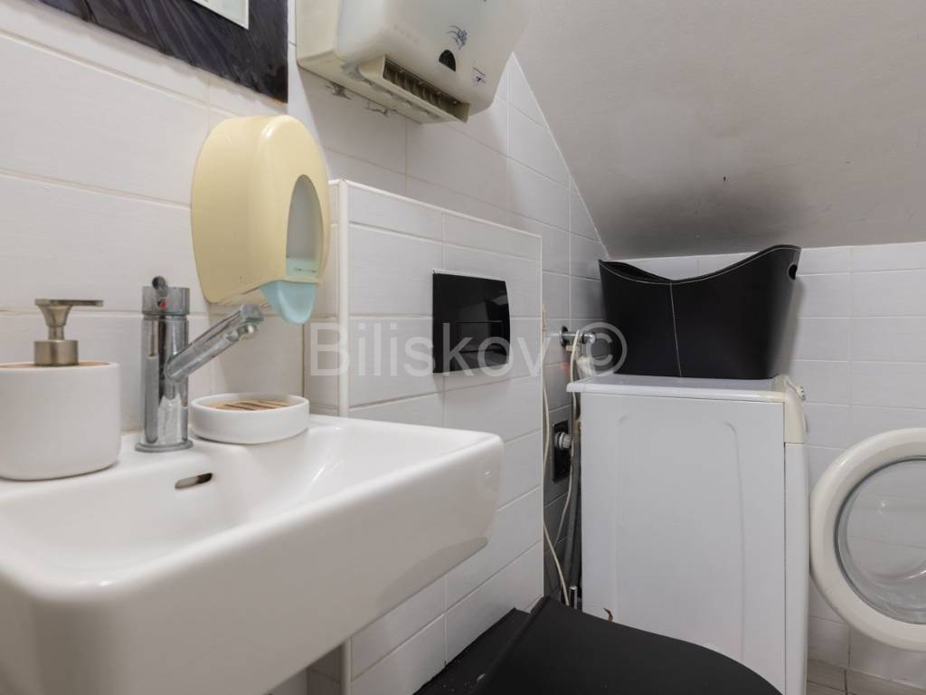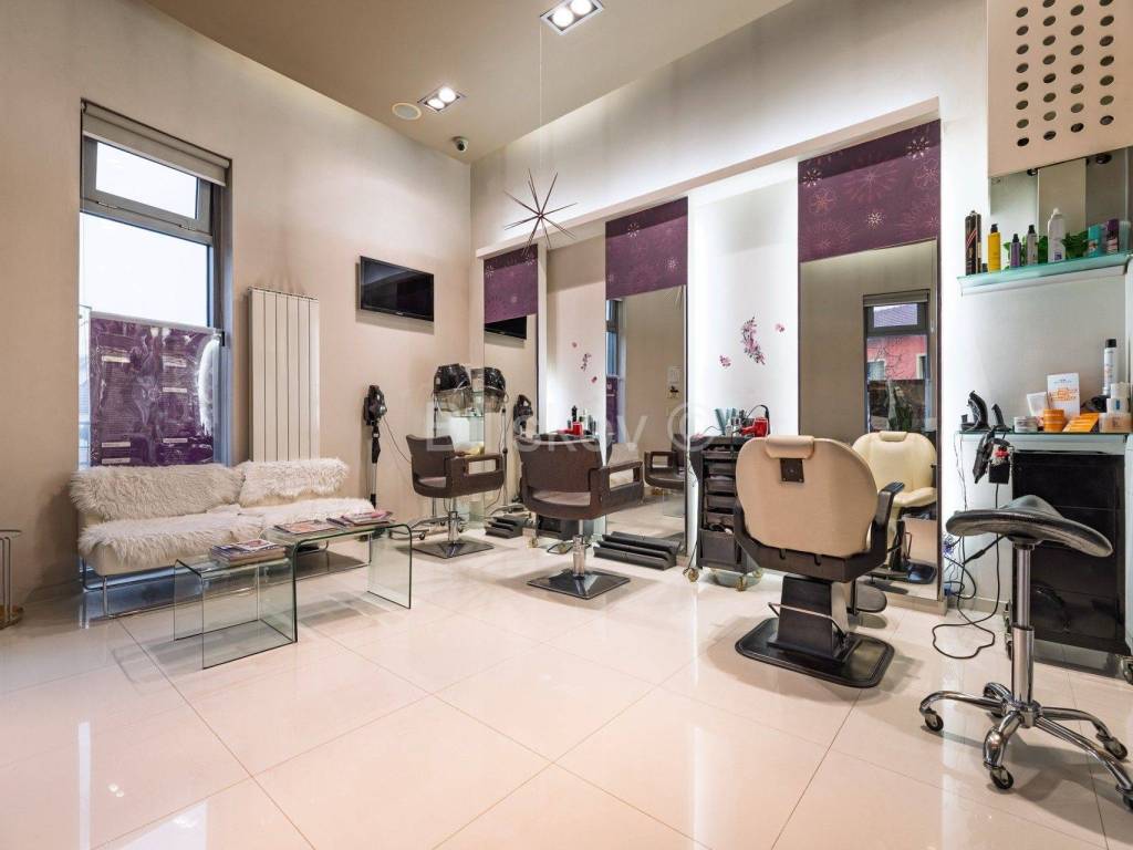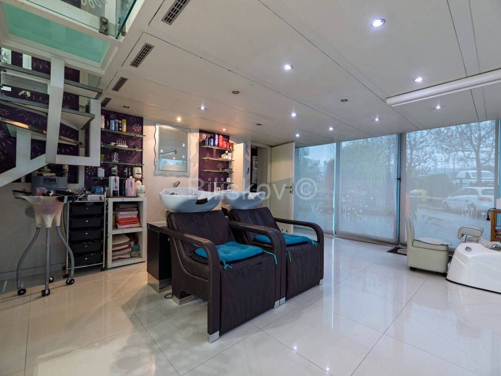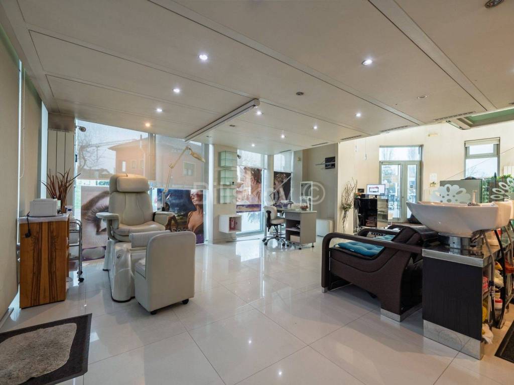 Poslovni prostor, renomirani salon ljepote, sastoji se od frizerskog salona, kozmetičkog salona, pretprostora, garderobe i wc-a u prizemlju površine 64,12 m2, stubišta, hodnika, 2 sobe za masažu, solarija i kupaonice na galeriji površine 23,03 m2.