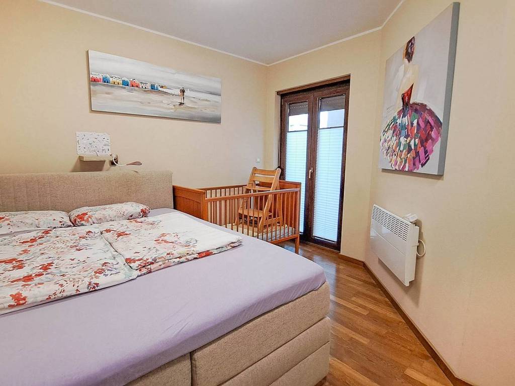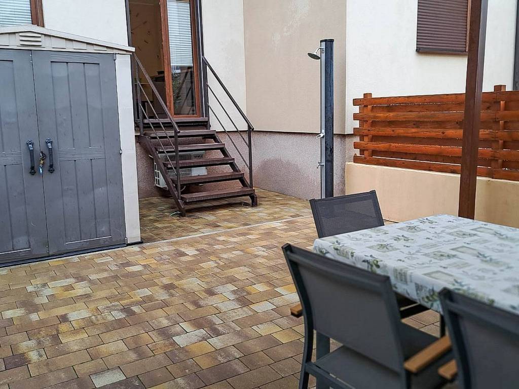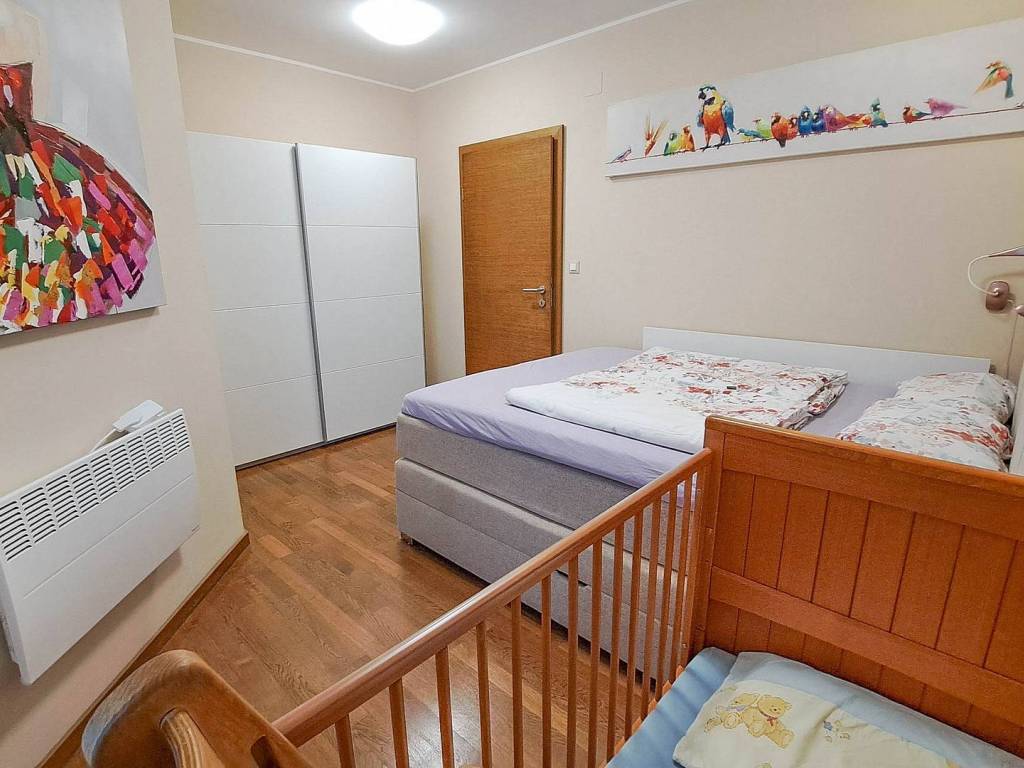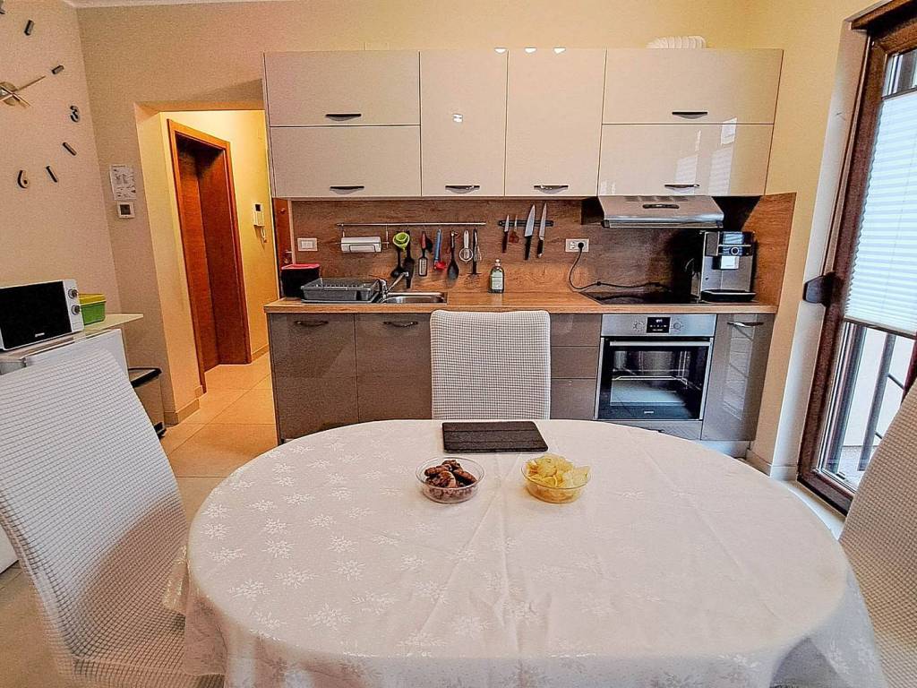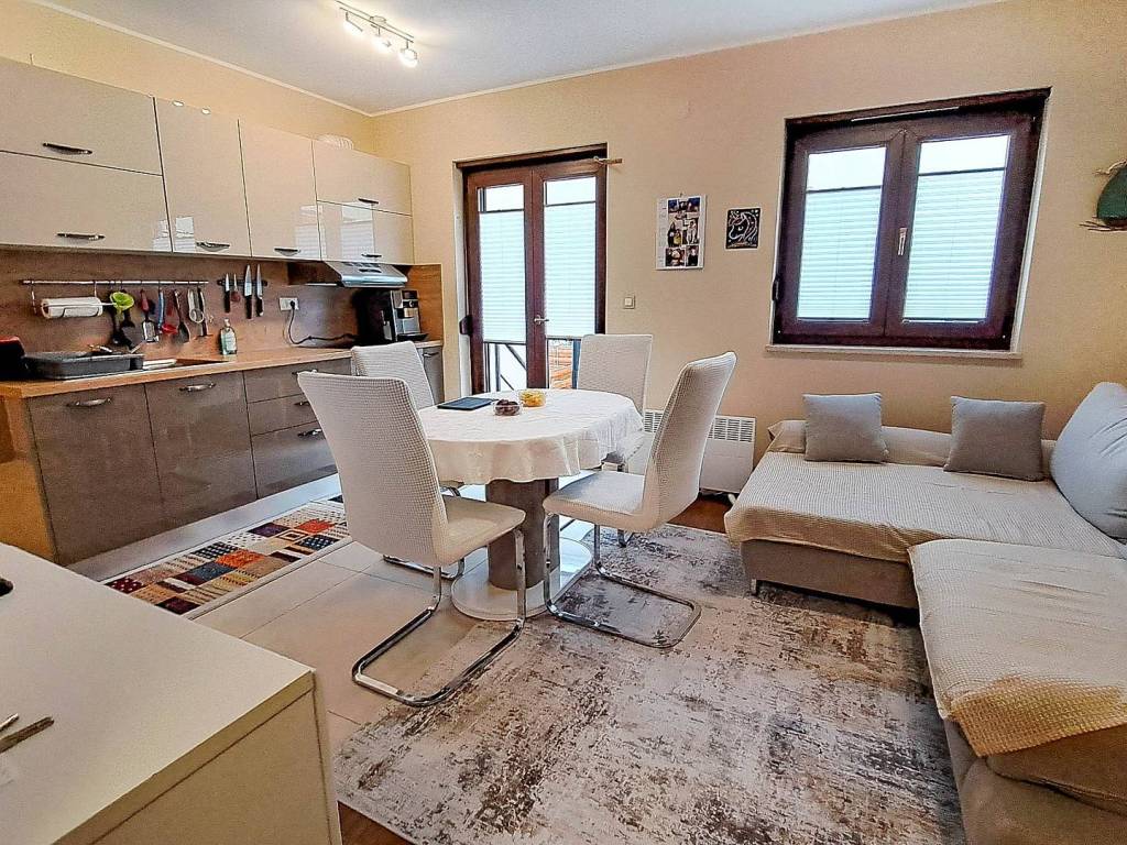 Stan je izuzetno kvalitetan, lijep i funkcionalan. U stanu su parketi, u kuhinja dolazi sa svim potrebnim uređajima kao mašina za suđe dok je u vrtu prekrasna tenda s ugrađenim svjetlima koja imaju mogućnost regulacije intenziteta LED rasvjete te stolom i stolicama kao i spremište za alat, stolice i stol i ostale stvari za kupanje i slično.
