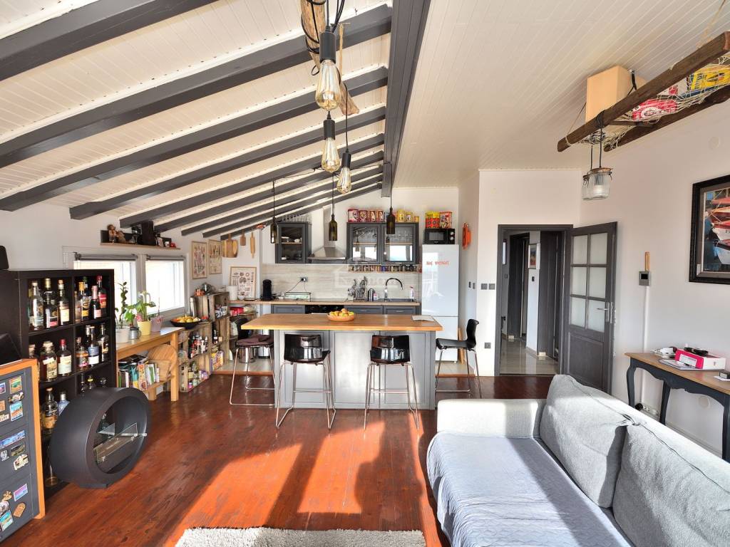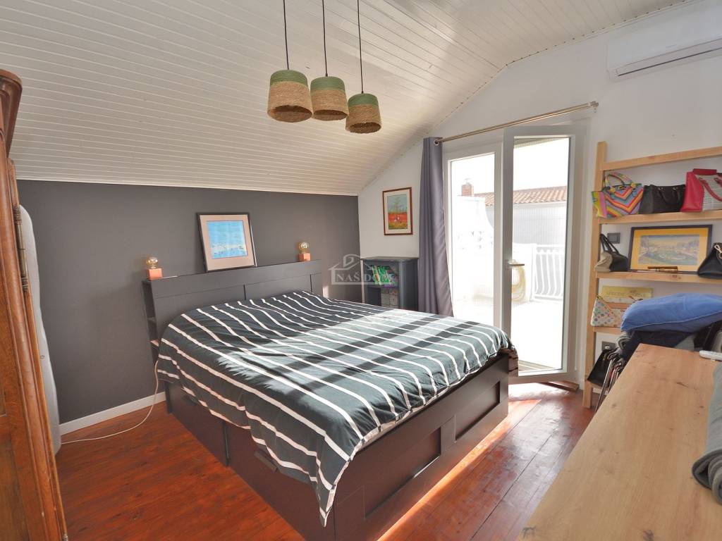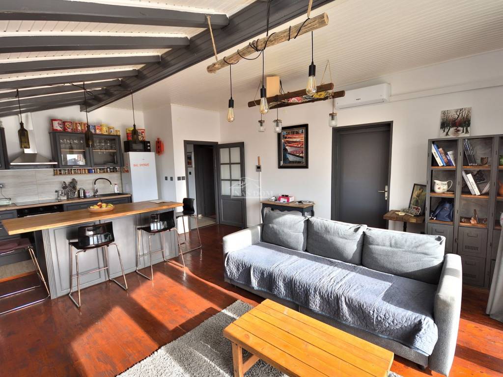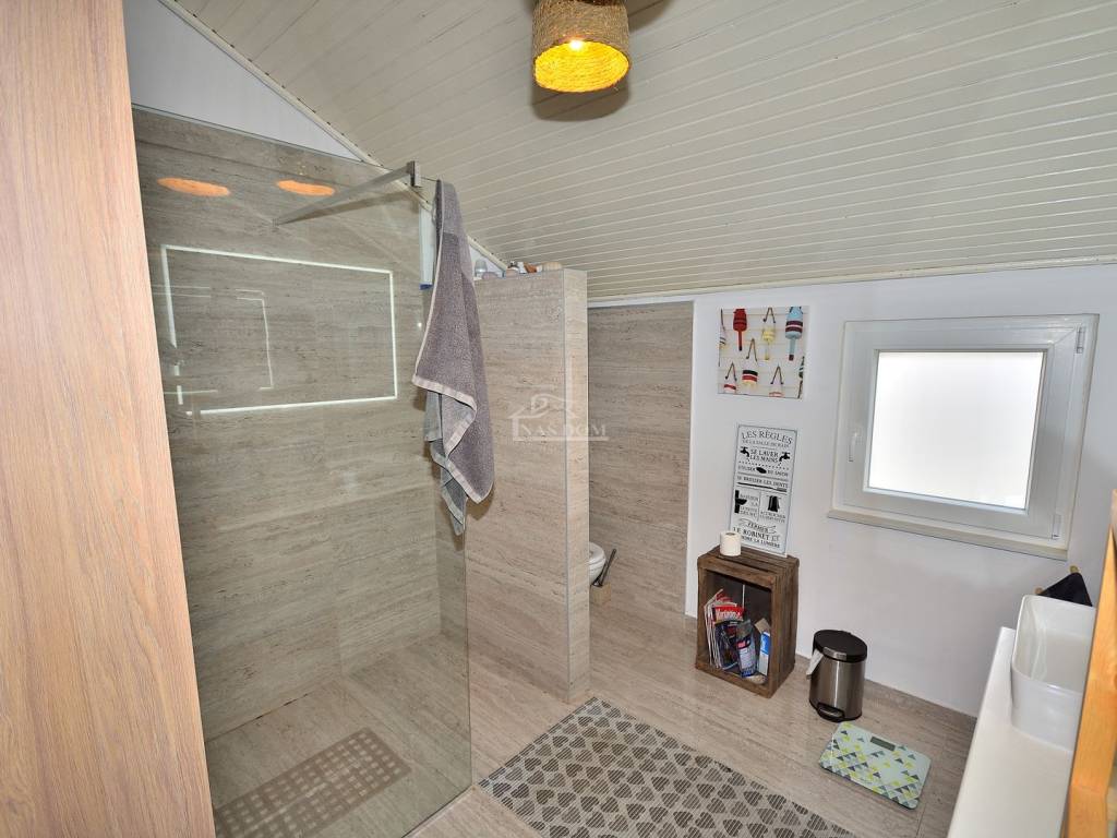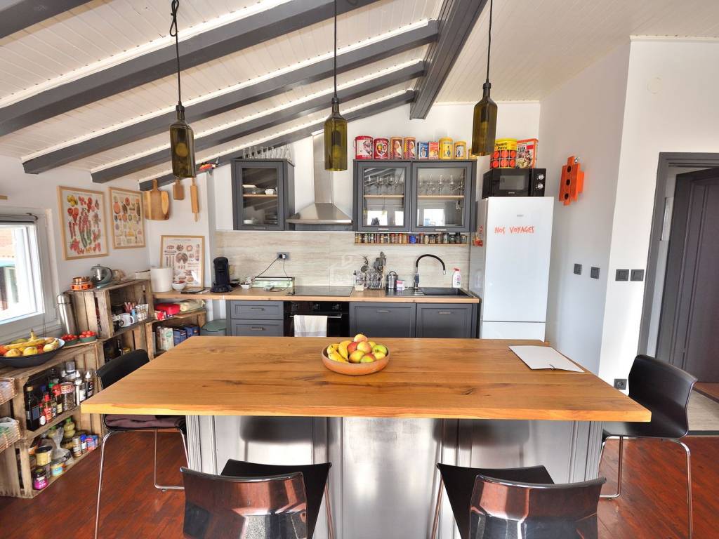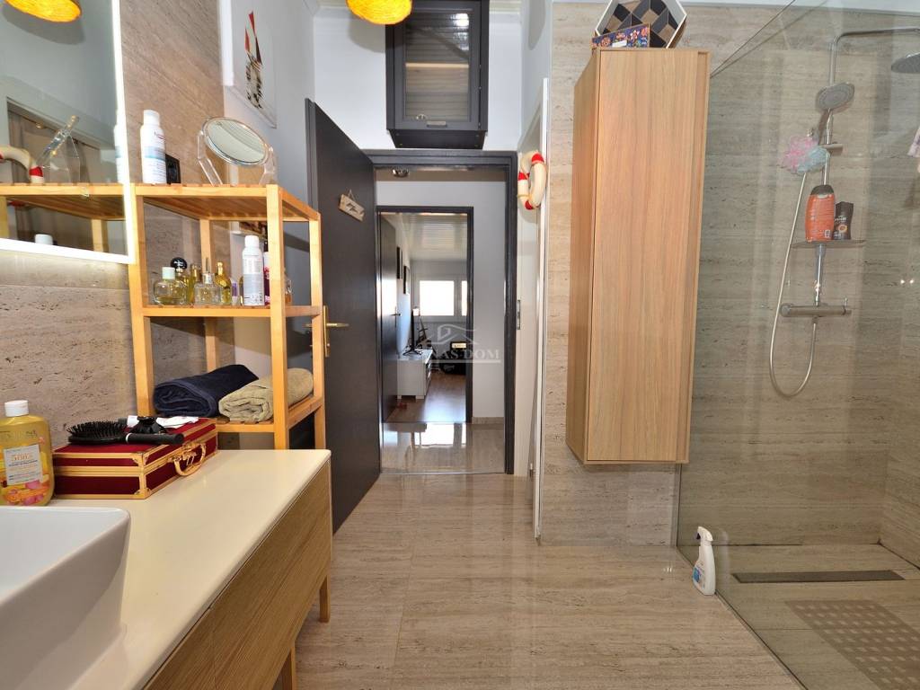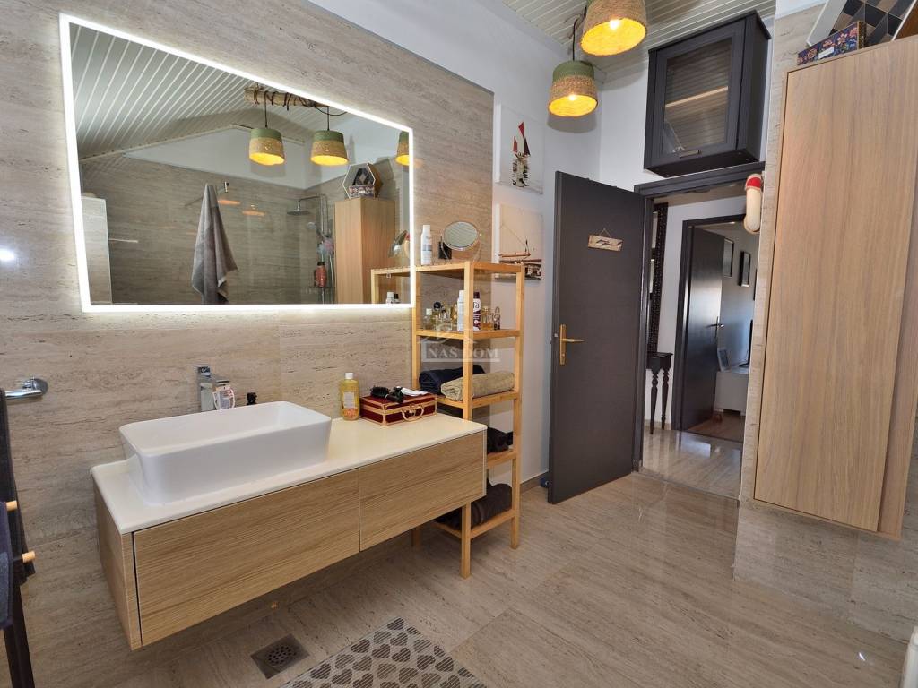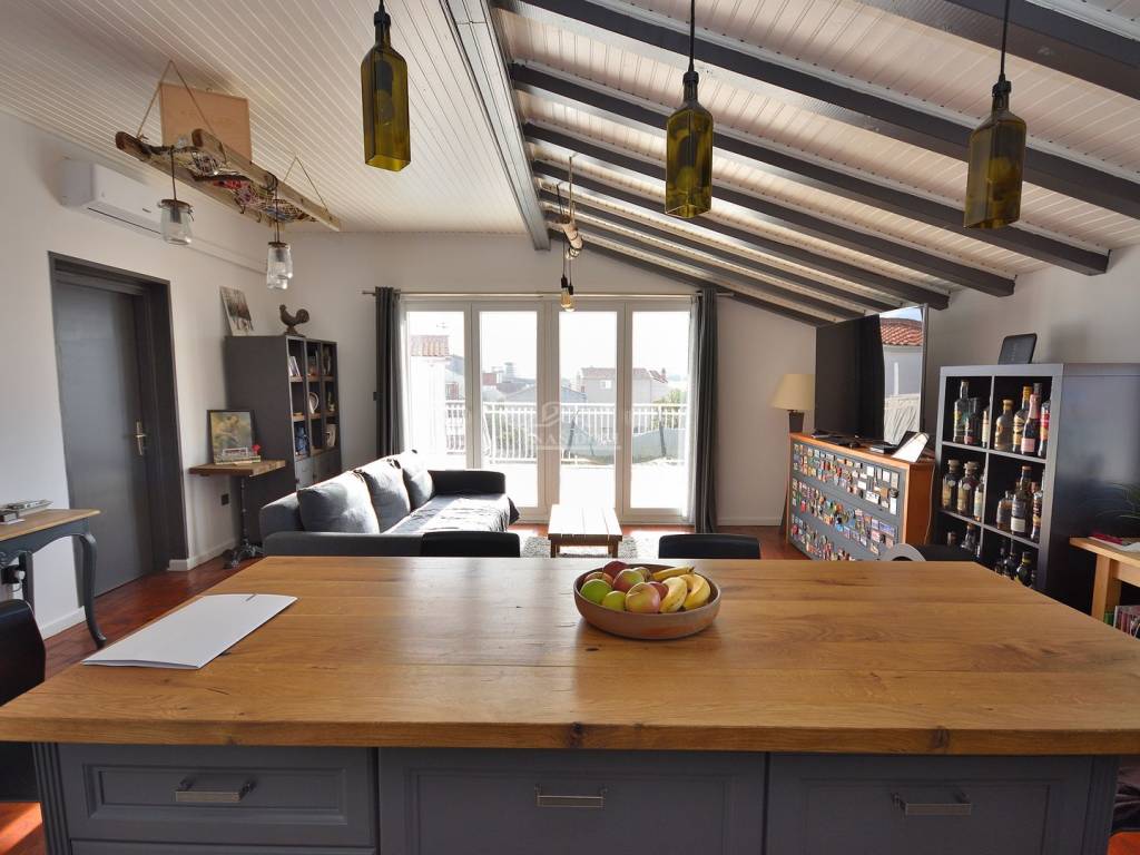 Vodice - prodaje se komforan i lijepo namješten stan na drugom katu manje stambene zgrade na mirnoj lokaciji. Stan površine 116,83m2 ima privatan ulaz i stubište koje pripada isključivo stanu te sadrži hodnik, kupaonicu, dvije komforne spavaće sobe od kojih jedna ima izlaz na terasu, 1 manju spavaću sobu, kuhinju s blagovaonicom i dnevni boravak open space rasporeda s izlazom na terasu površine 29.40m2 s koje se pruža predivan pogled na more i grad Vodice. Stan je klimatiziran, klima uređaji grijanje /hlađenje se nalaze u spavaćim sobama i dnevnom boravku, te je kompletno namješten. Stanu pripada i ograđeno dvorište površine 79m2 gdje se nalaze dodatni sadržaji poput vanjskog WC-a, ostave, ljetne kuhinje i prostora za druženje te jedno prostrano parkirno mjesto.
