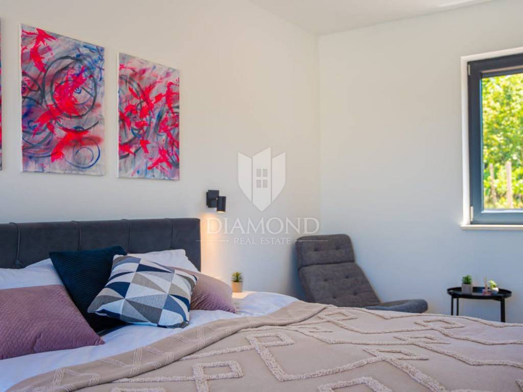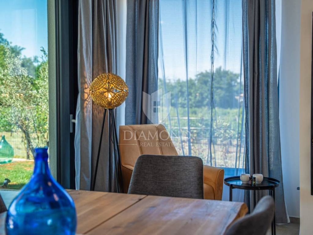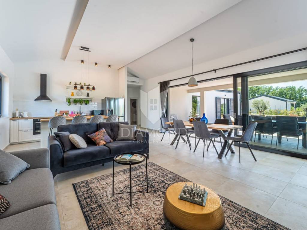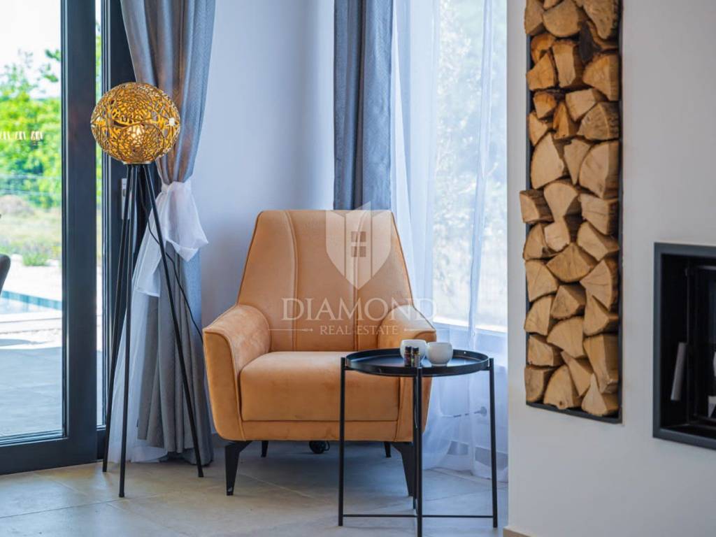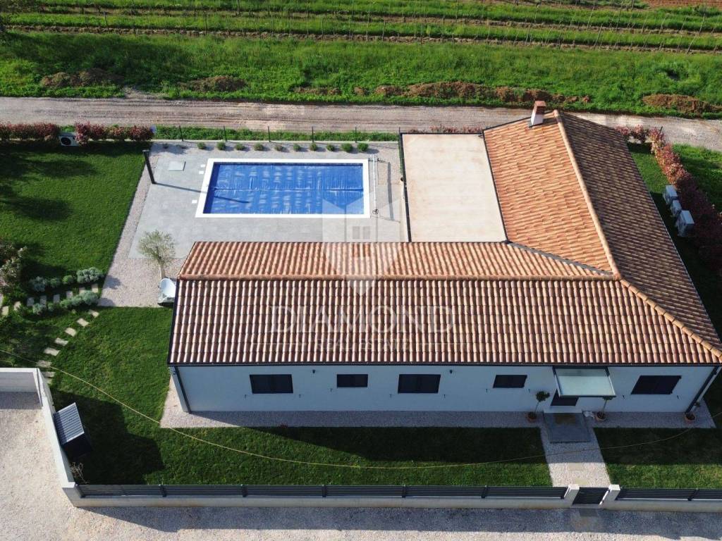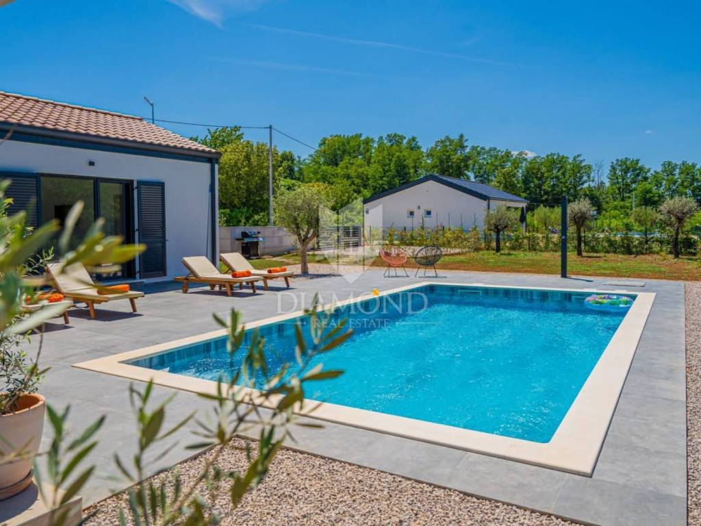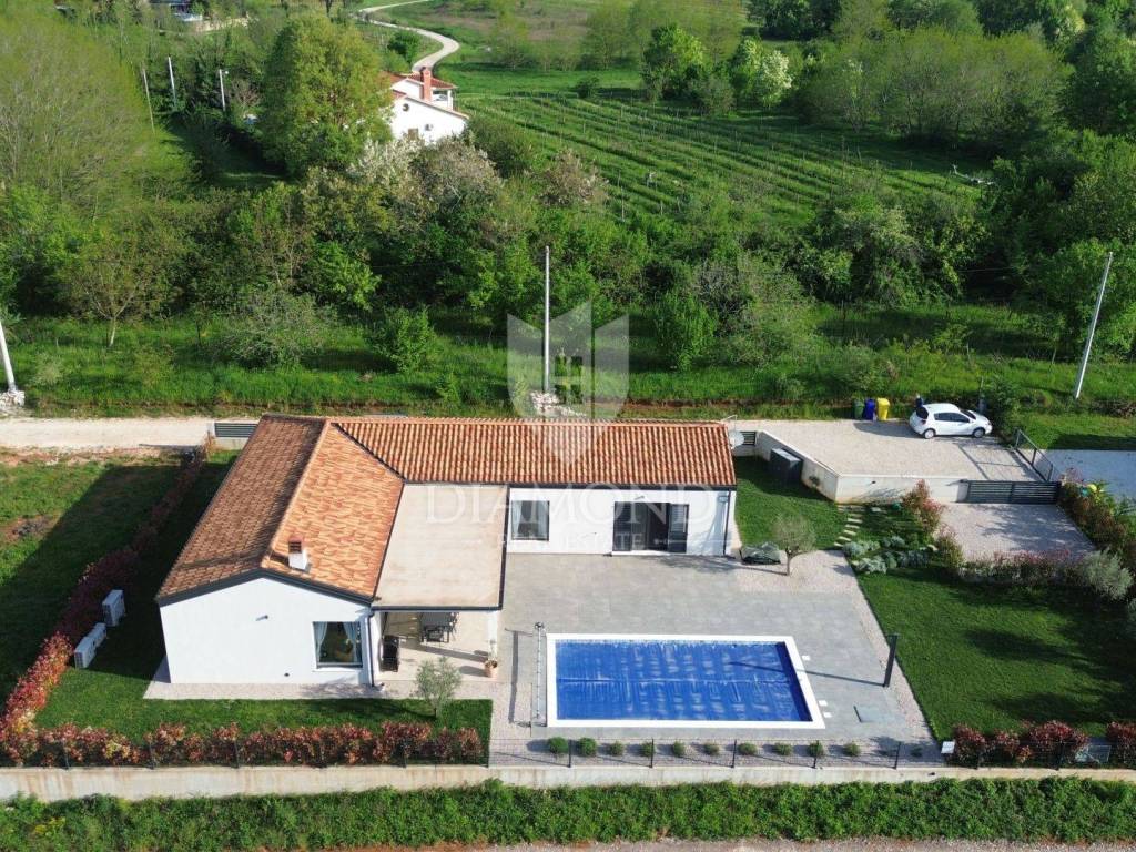Na prodaju je moderna novogradnja s grijanim bazenom smještena na mirnoj i privatnoj lokaciji, svega 10 minuta vožnje od centra grada. Ova kvalitetna nekretnina prostire se na 150 m² stambene površine, dok ukupna površina okućnice iznosi 850 m².