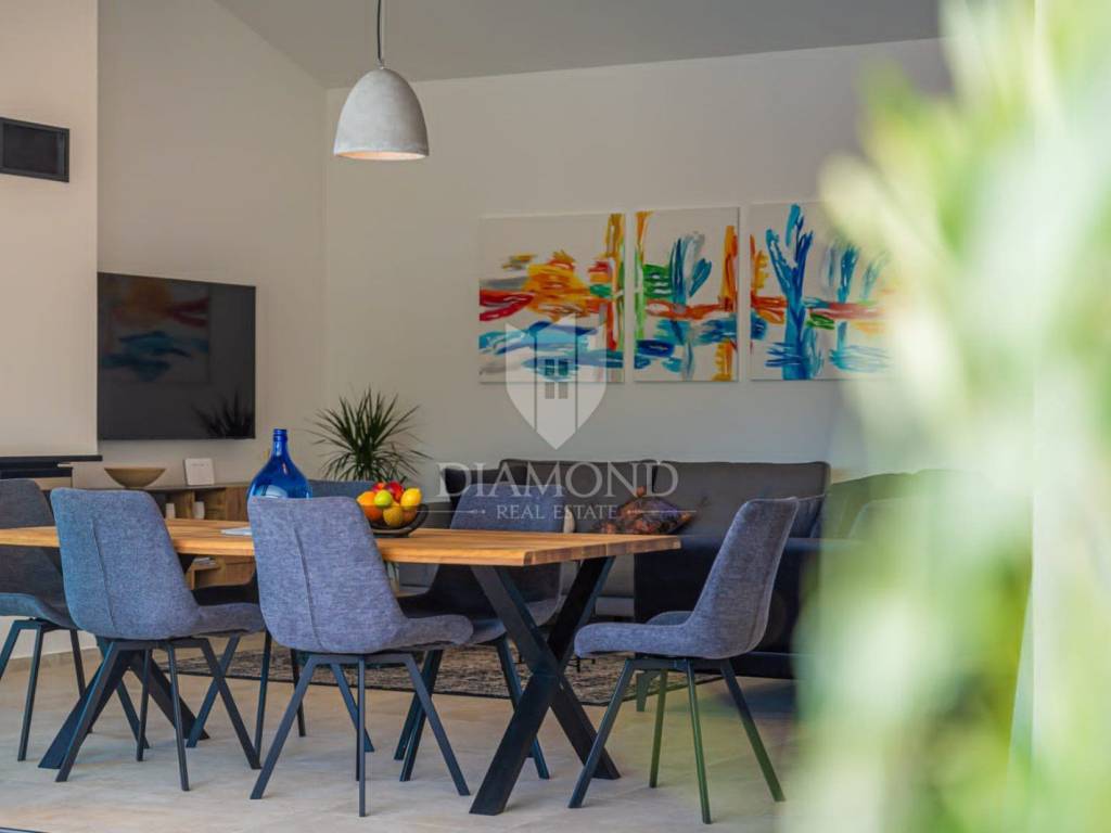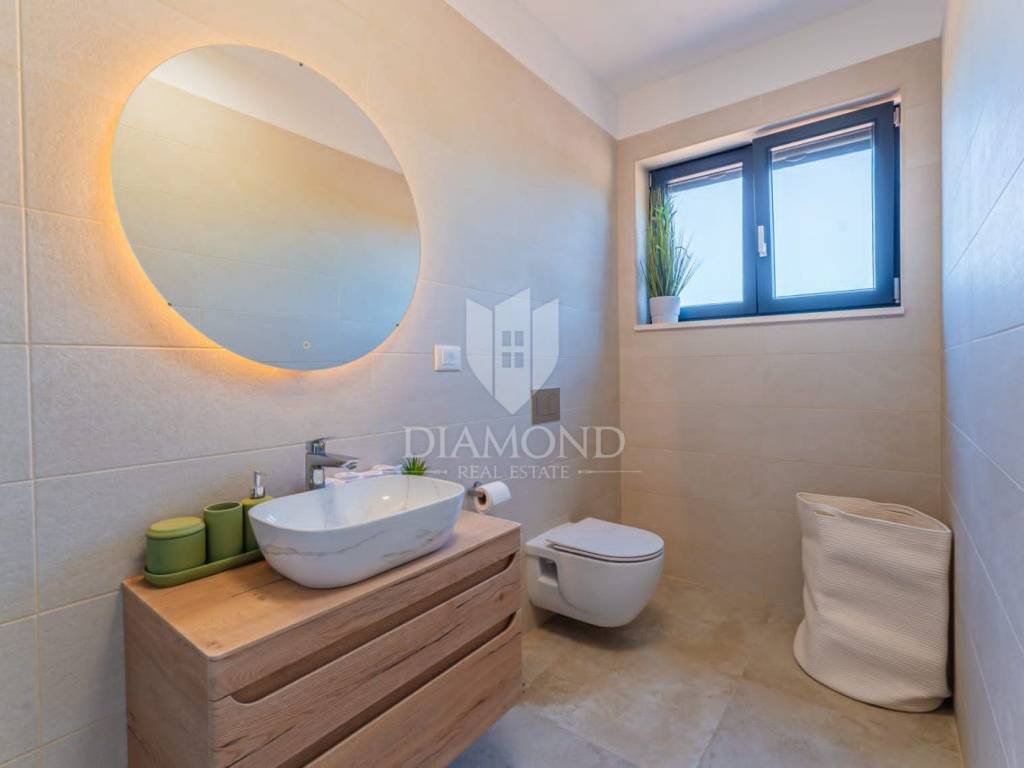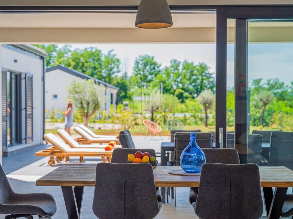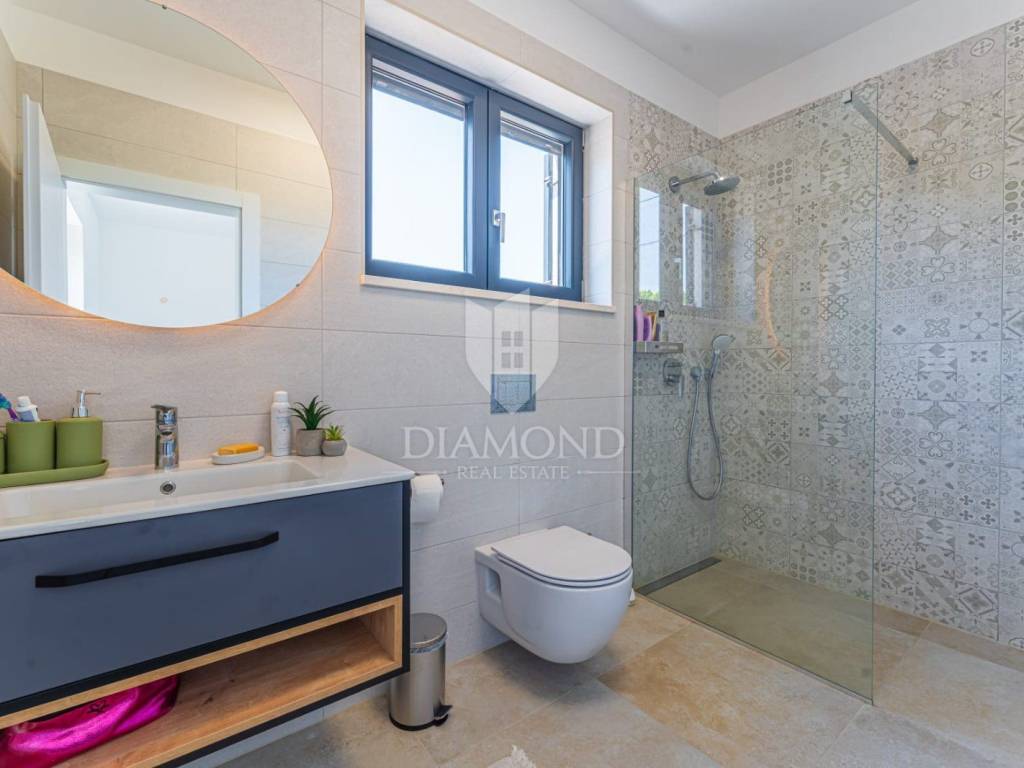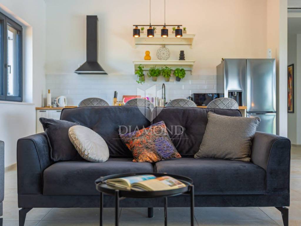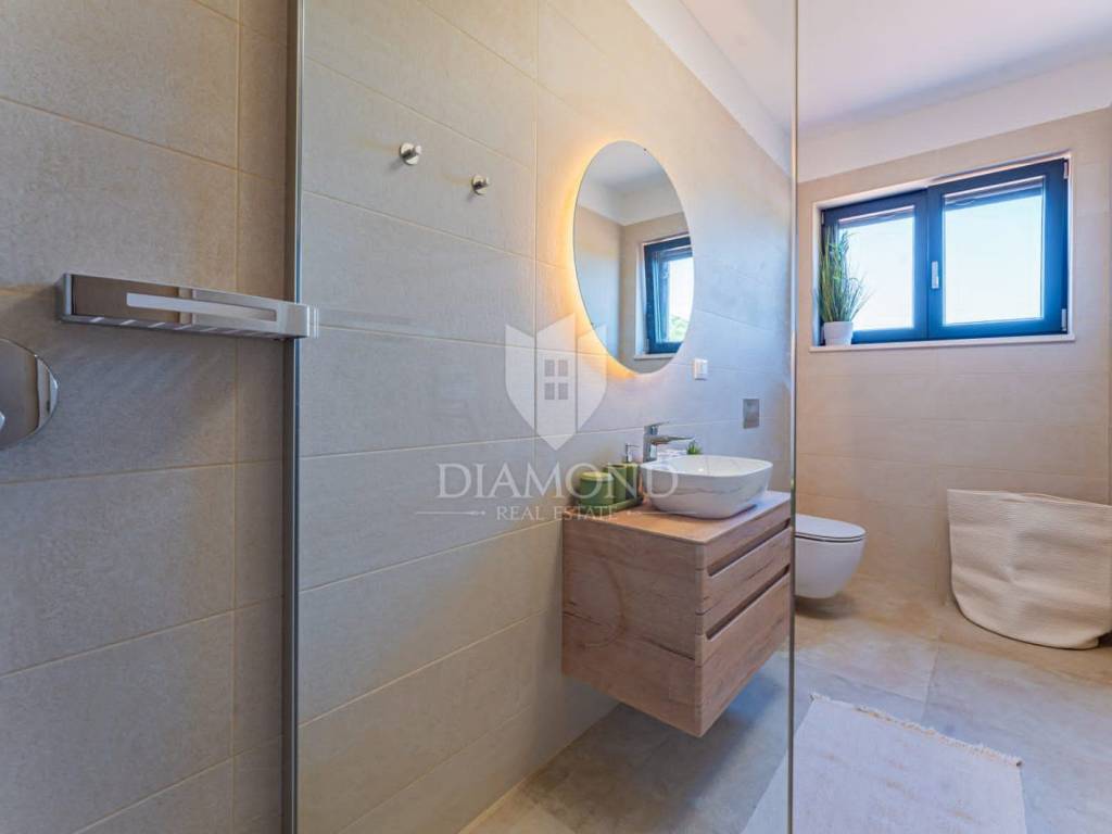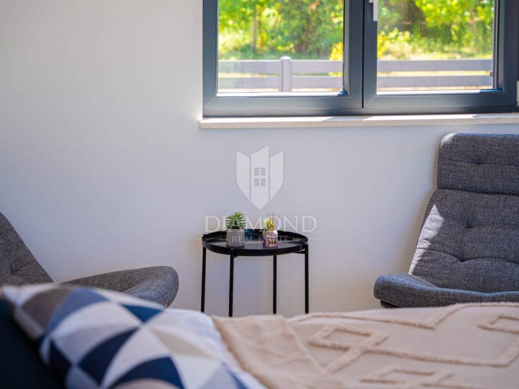 Na prodaju je moderna novogradnja s grijanim bazenom smještena na mirnoj i privatnoj lokaciji, svega 10 minuta vožnje od centra grada. Ova kvalitetna nekretnina prostire se na 150 m² stambene površine, dok ukupna površina okućnice iznosi 850 m².