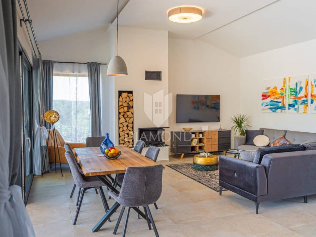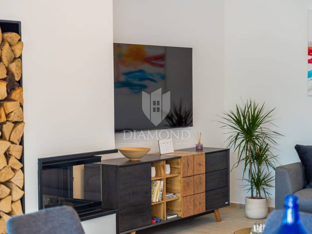 Kuća je opremljena podnim grijanjem u svim prostorijama, klima uređajima te kaminom u dnevnom boravku koji stvara poseban ugođaj tijekom zimskih mjeseci. Grijani bazen omogućuje korištenje i izvan ljetne sezone.