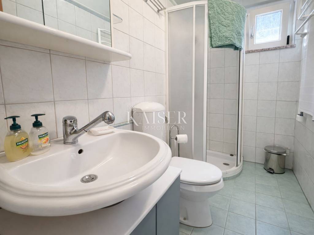 U suterenu se nalazi jednosoban apartman površine 25 m², s odvojenim dnevnim boravkom i kuhinjom te kupaonicom. Apartman ima vlastitu terasu s pogledom na more, što ga čini idealnim za goste ili turistički najam.