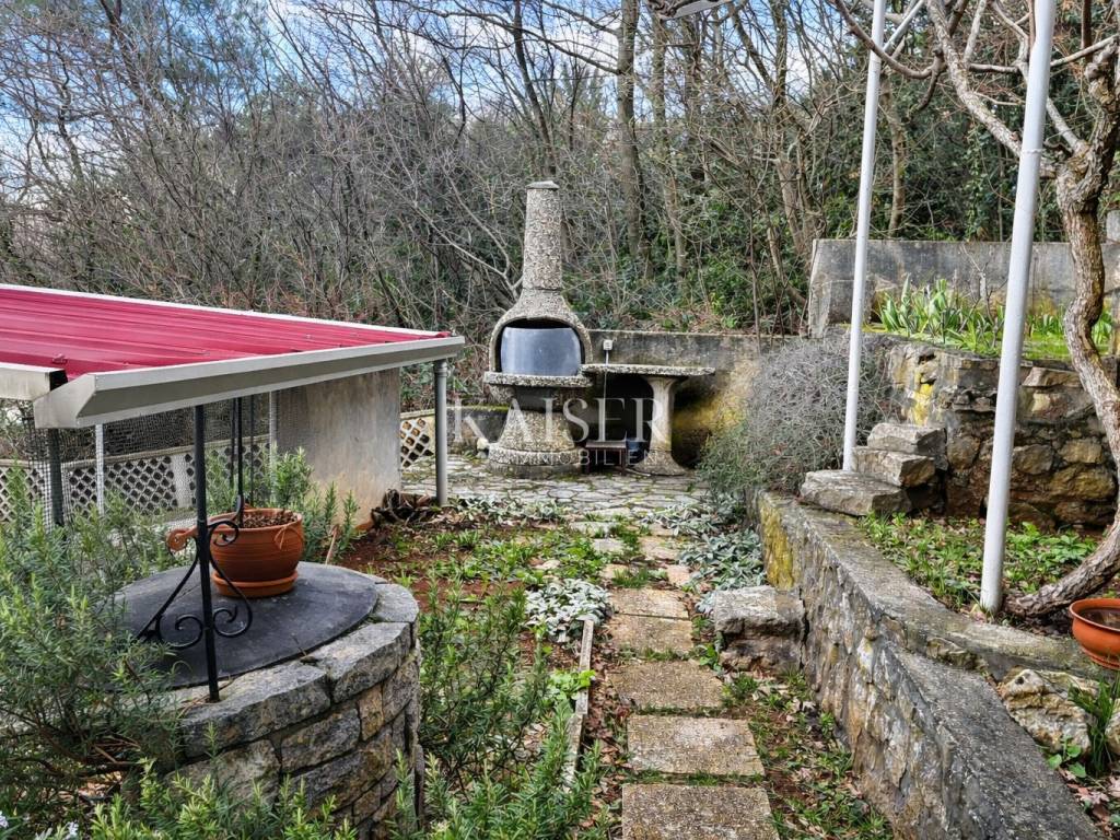 Okućnica je veoma dobro iskorištena i osmišljena. u kaskadama, čime je postignuta dinamična organizacija prostora s više zasebnih cjelina.