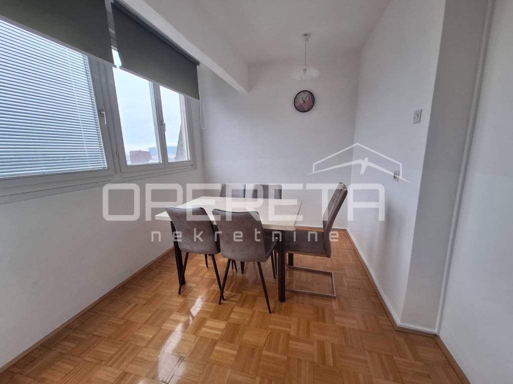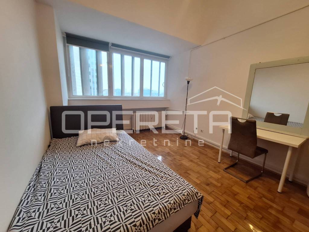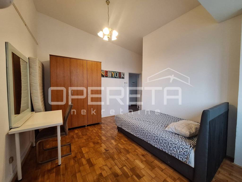 Iznajmljuje se 3 sobni stan ukupne kvadrature od 77,4 m2 , Sastoji se od 3 spavaće sobe od kojih jedna ima izlaz na loggiu, kuhinje, blagovaonice, kupaonice, saniranog čvora. Stan se nalazi u zgradi s liftom koji vozi do 5 kata, a ostatak su stepenice.