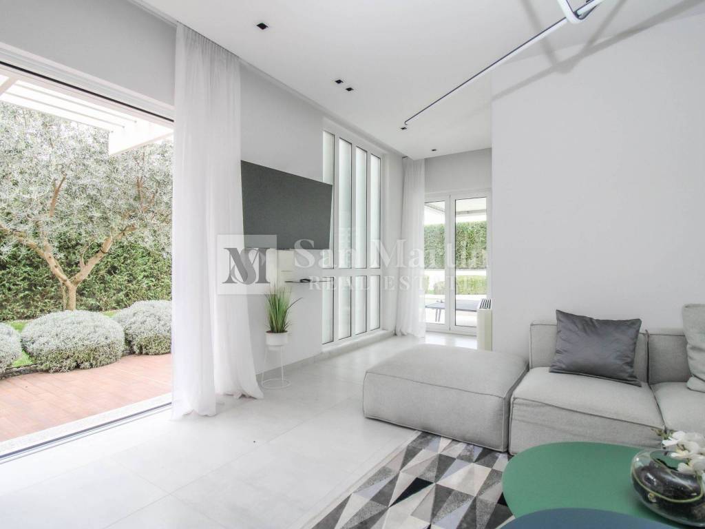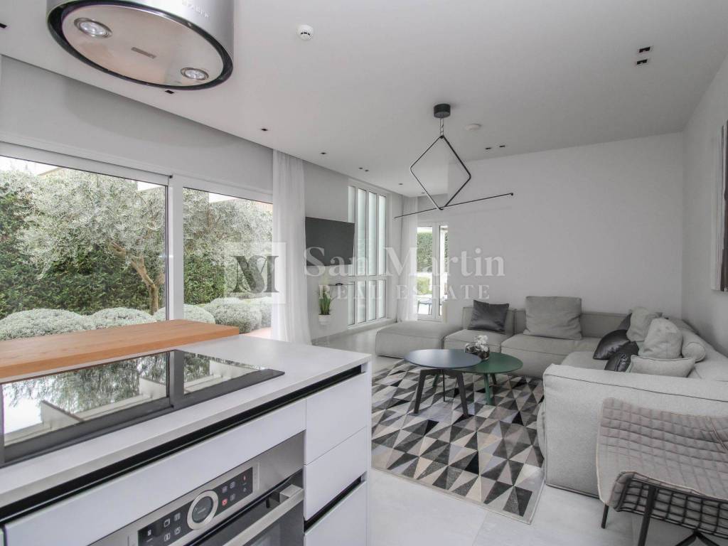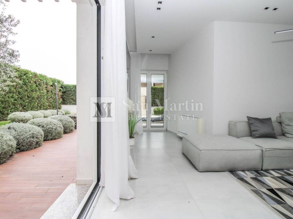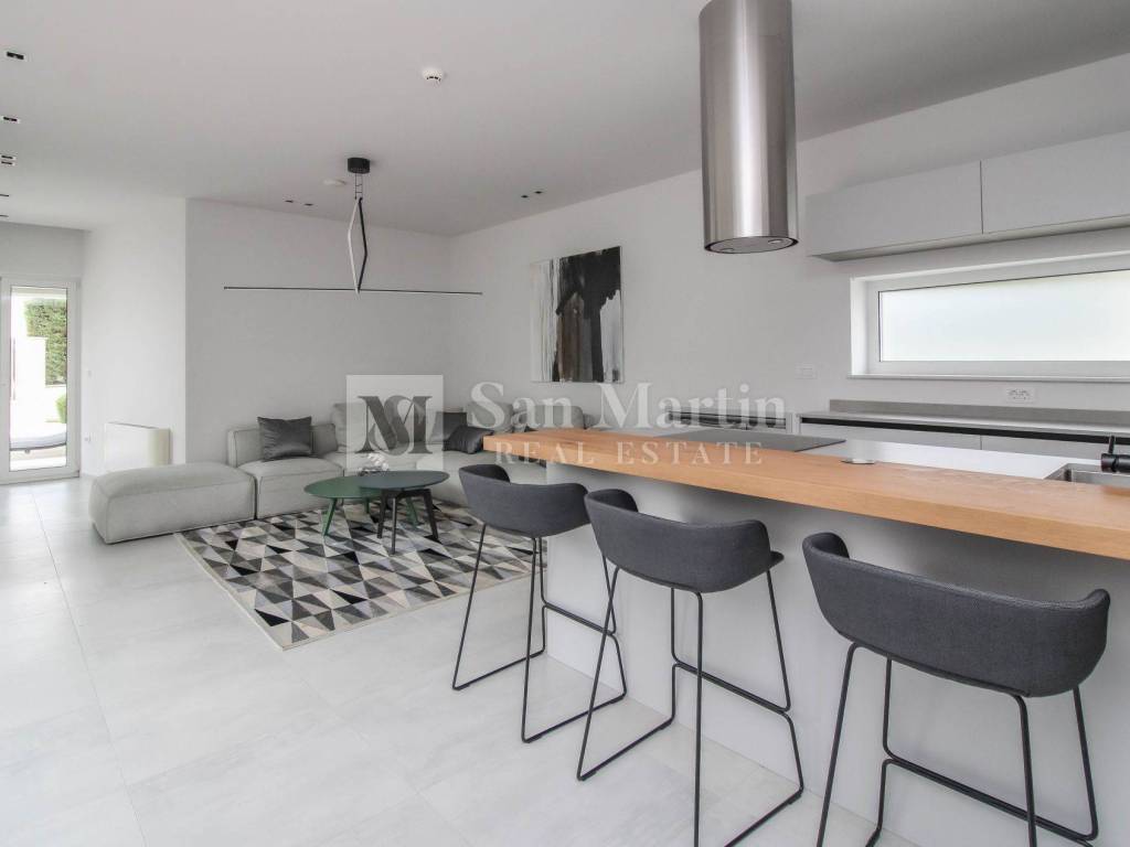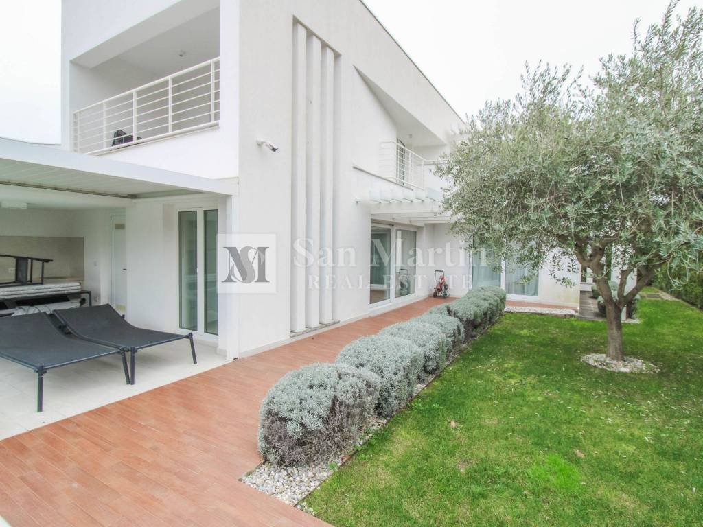 Dnevni prostor nekretnine vodi u lijepi vrt zasađeni mediteranskim biljem koji smjestio bazen sa zonom za sunčanje, natkrivenu vanjsku kuhinju, te dva parkirna mjesta.