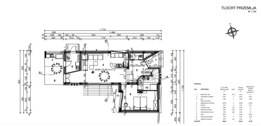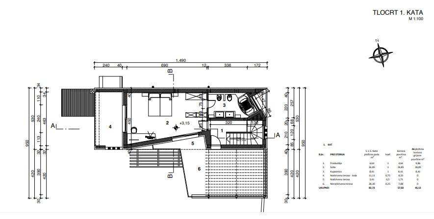 Kuća se prostire na dvije etaže. U prizemlju su se smjestili dnevni boravak s kuhinjom i blagovaonom otvorenog koncepta, jedna prostrana spavaća soba sa vlastitom kupaonom te izlazom u vrt i gostinjski WC. Dok na katu se nalazi još jedna spavaća soba također sa vlastitom kupaonom i izlazom na terasu.