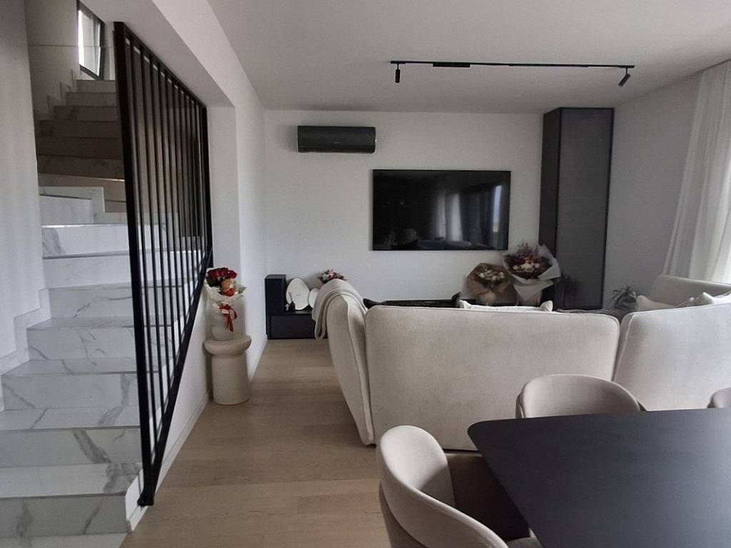 Stan se odlikuje promišljenim rasporedom, obiljem prirodnog svjetla i osjećajem privatnosti, a sastoji se od dvije etaže. Na drugom katu nalazi se moderna kuhinja povezana s blagovaonicom i prostranim dnevnim boravkom, kupaonica, hodnik te udobna spavaća soba, dok se na nadgrađu nalaze dodatna soba, kupaonica, garderoba i unutarnje stubište, što prostoru daje dinamičnost i luksuzan dojam.