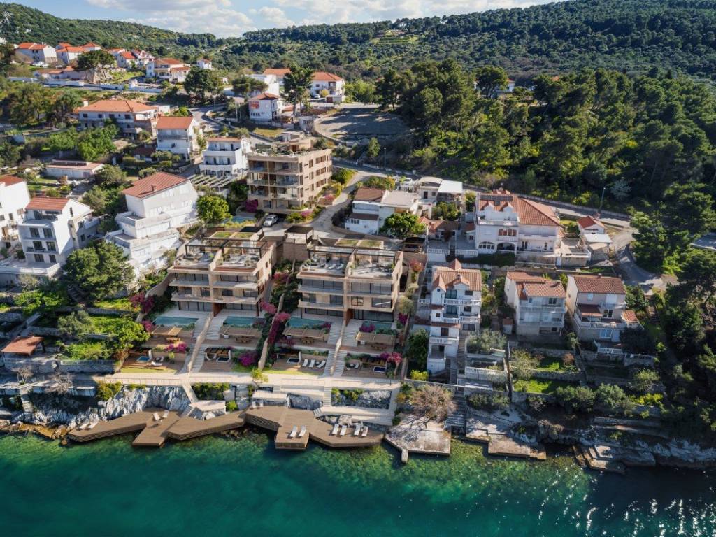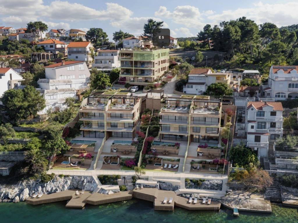 Lokacija je izvrsna more je udaljeno svega nekoliko koraka, a u blizini se nalaze Trogir, Split i zračna luka. Čisto more, mirno okruženje i svi potrebni sadržaji čine ovaj stan savršenim izborom za život ili odmor.
