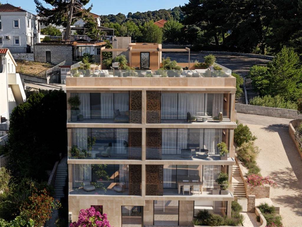 Dodatnu vrijednost stanovanju daju zajednički sadržaji zgrade krovna terasa s lounge zonom i pogledom na more, fitness prostor, saune i bazen. U cijenu je uključeno jedno garažno parkirno mjesto, dok postoji mogućnost kupnje dodatnog garažnog parkirnog mjesta.