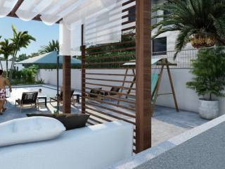 Prostrani i svijetli apartman nalazi se na sjevernoj strani otoka, svega 50 metara od prekrasnih pješčanih plaža, šarmantnih restorana i udobnih trgovina. Apartman se sastoji od 132 m2 stambenog prostora funkcionalne kuhinje s blagovaonicom, prostranog dnevnog boravka, 3 udobne spavaće sobe, 2 moderna kupatila te prostranih terasa od 23 m s pogledom na more.