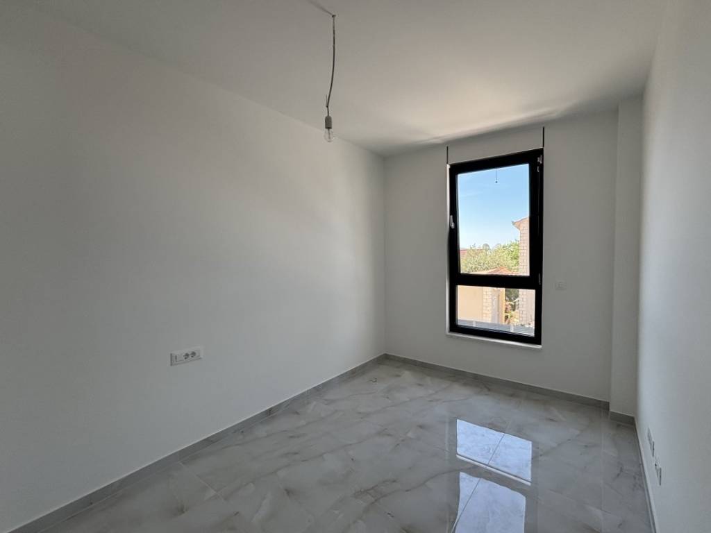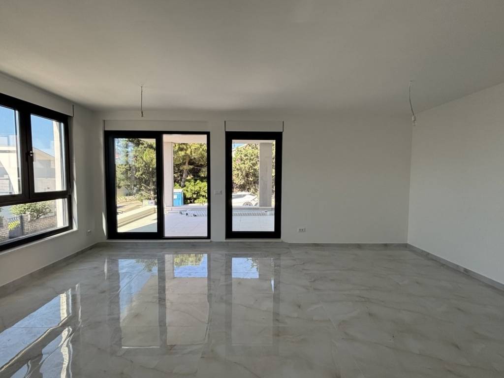 Stan se prodaje nenamješten, što budućem vlasniku ostavlja mogućnost uređenja interijera prema vlastitim željama i stilu. Opremljen je kvalitetnim neutralnim pločicama i modernim sanitarnim elementima. Za ugodnu temperaturu tijekom cijele godine služe tri klima uređaja, kao i podno grijanje, koje dodatno podiže razinu komfora. Uz stan dolazi i jedno garažno parkirno mjesto smješteno u podrumu zgrade, što je dodatna pogodnost.