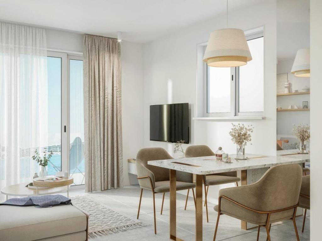 Zatvoreni stambeni prostor površine je 43,8 m, a sastoji se od dvije spavaće sobe, kuhinje s blagovaonicom i dnevnim boravkom iz kojeg se izlazi na natkriveni balkon od 7 m. Posebna vrijednost ove nekretnine je prostrana krovna terasa površine 62,8 m, s koje se pruža neometan pogled na more i zalazak sunca savršeno mjesto za opuštanje ili druženje. Stan dolazi s pripadajućim vanjskim parkirnim mjestom, a na raspolaganju je i zajednički bazen za vlasnike.
