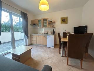 Na pješačkoj udaljenosti nalaze se uređena plaža, sportska igrališta, market, pekara i razni restorani što svakako pružaju bezbrižan i ugodan boravak.