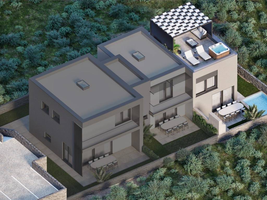 Moguće je dogovoriti dodatke kao što su krovna terasa s jacuzzijem i pergolom (65.000 ), bazen (42.000 ) ili roštilj s radnim pultom (18.000 ). Pogodno za odmor ili turistički najam.